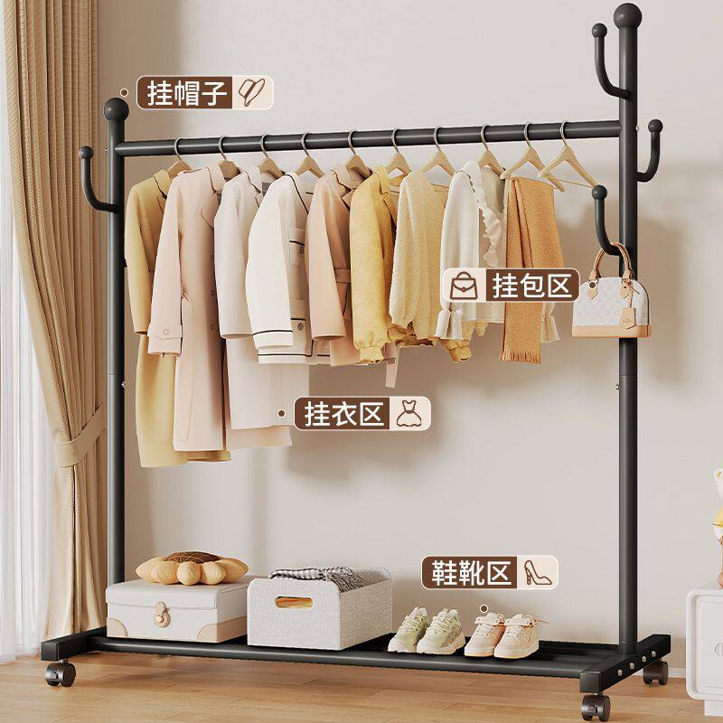 晾衣架落地家用可移动卧室凉衣架阳台挂衣服架子室内简易杆衣帽架