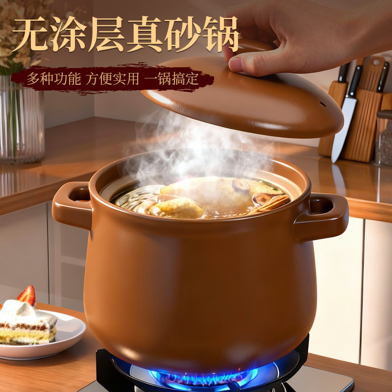 平定无釉砂锅家用燃气灶专用炖锅老式土煲汤锅耐高温干烧不裂陶罐