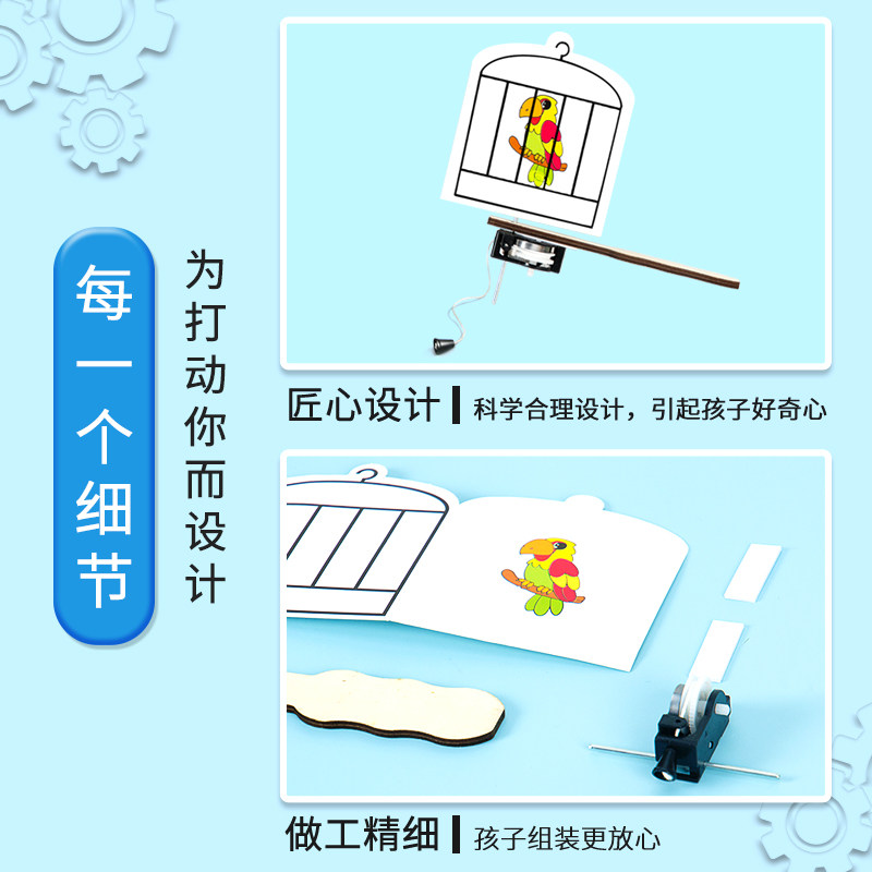 笼中鸟拼装模型小学生科技小制作DIY视觉停留幼儿园礼物科学实验