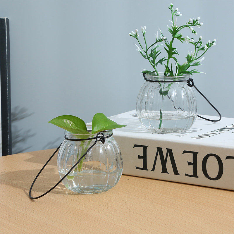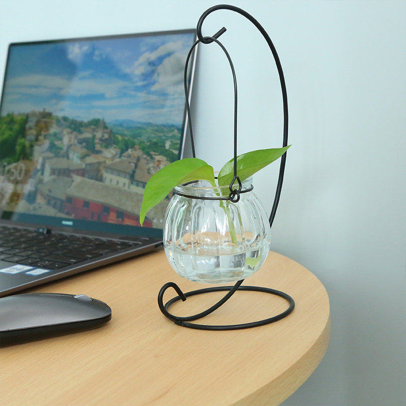 创意铁架水培绿萝玻璃花瓶容器盆办公室内桌面绿植现代摆件装饰品