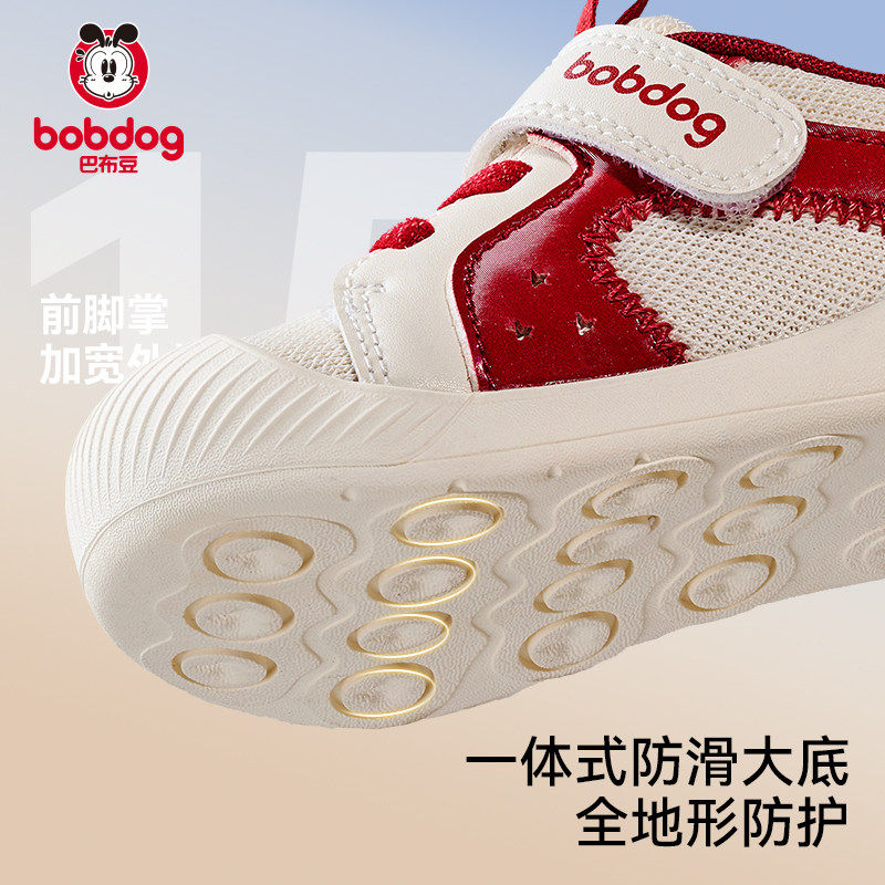 巴布豆官方正品宝宝童鞋秋冬婴儿周岁学步软底周岁鞋婴儿鞋红色鞋