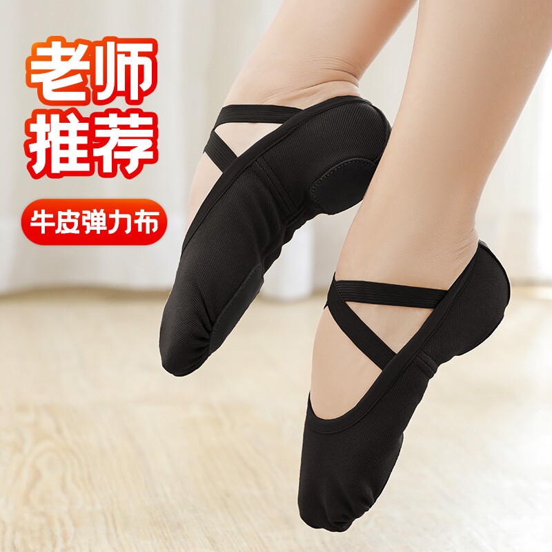 芭蕾舞蹈鞋女软底练功古典弹力中国舞成人儿童黑色猫爪鞋真皮专业
