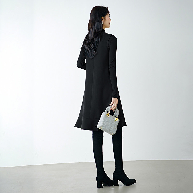 iqcq气球熊时尚辣妹套装秋季抹胸连衣裙女收腰一字肩黑色蓬蓬裙子