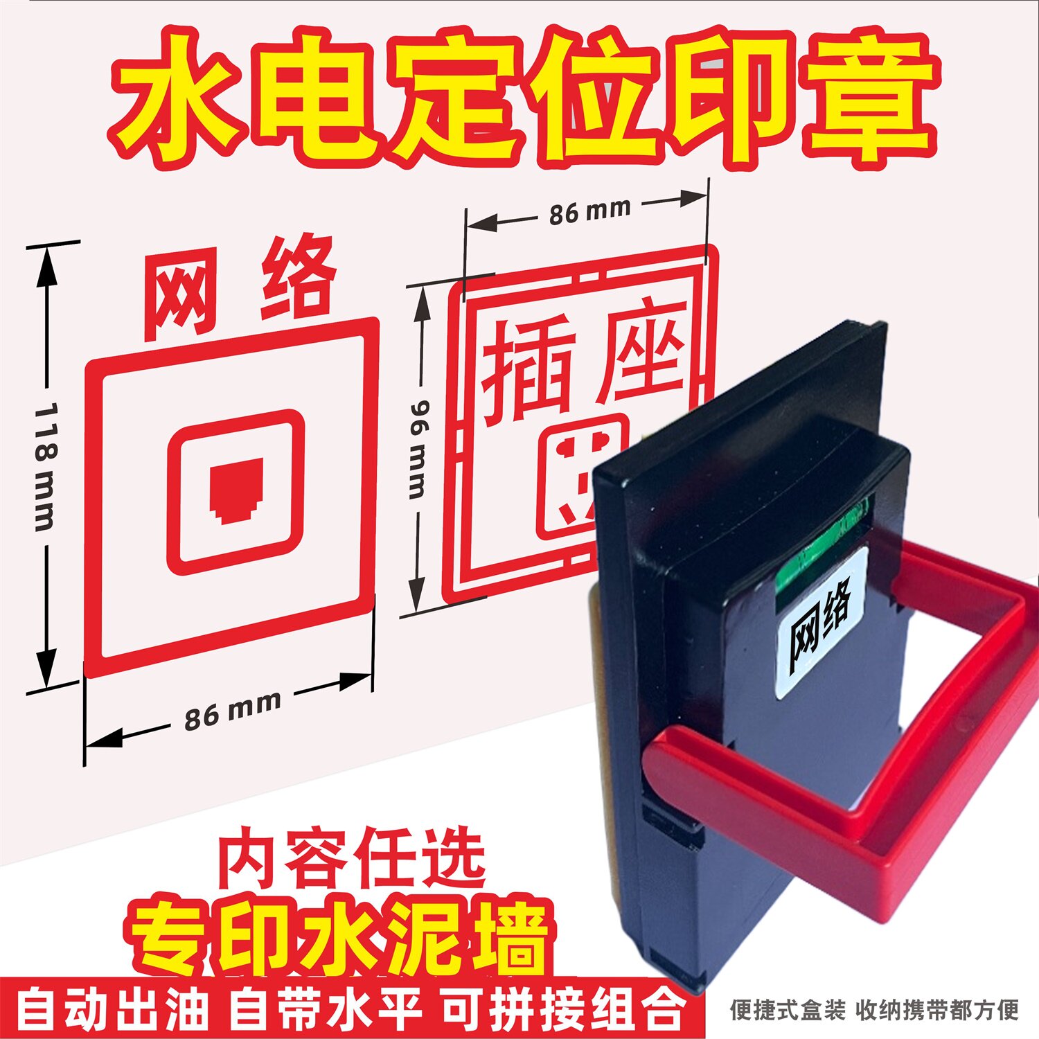 水电标记印章家装修定位开关插座标语地暖空调消防墙面板章印标识开槽画线盒精工3D实景放样板86底盒新墙板章