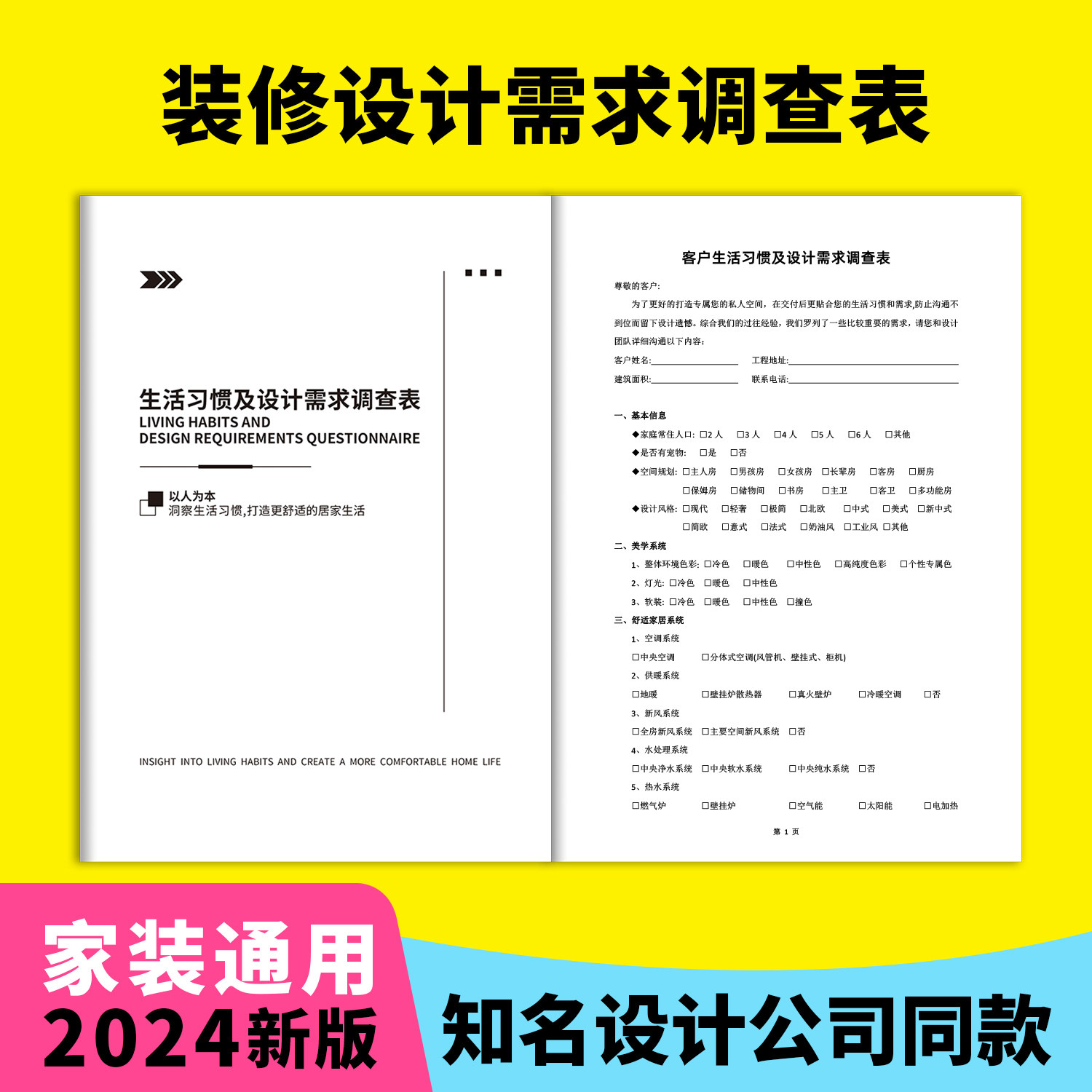 2025年新版设计需求调查表客户生活习惯采集装修收纳需求调查表