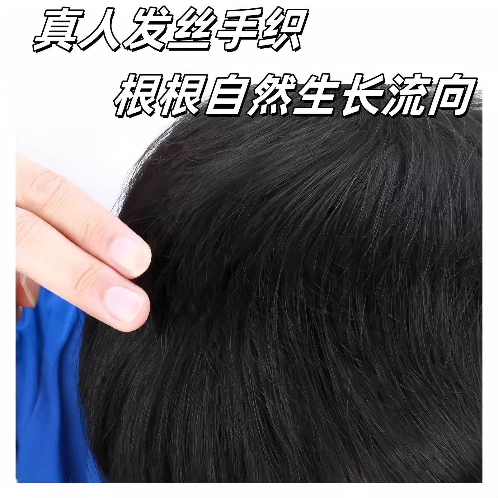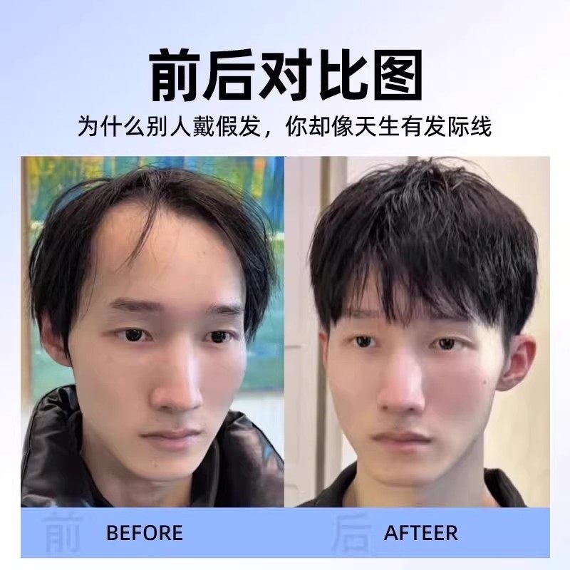 发际线假发片男士卡子款前额M型刘海透气轻薄真发男款男生补发片
