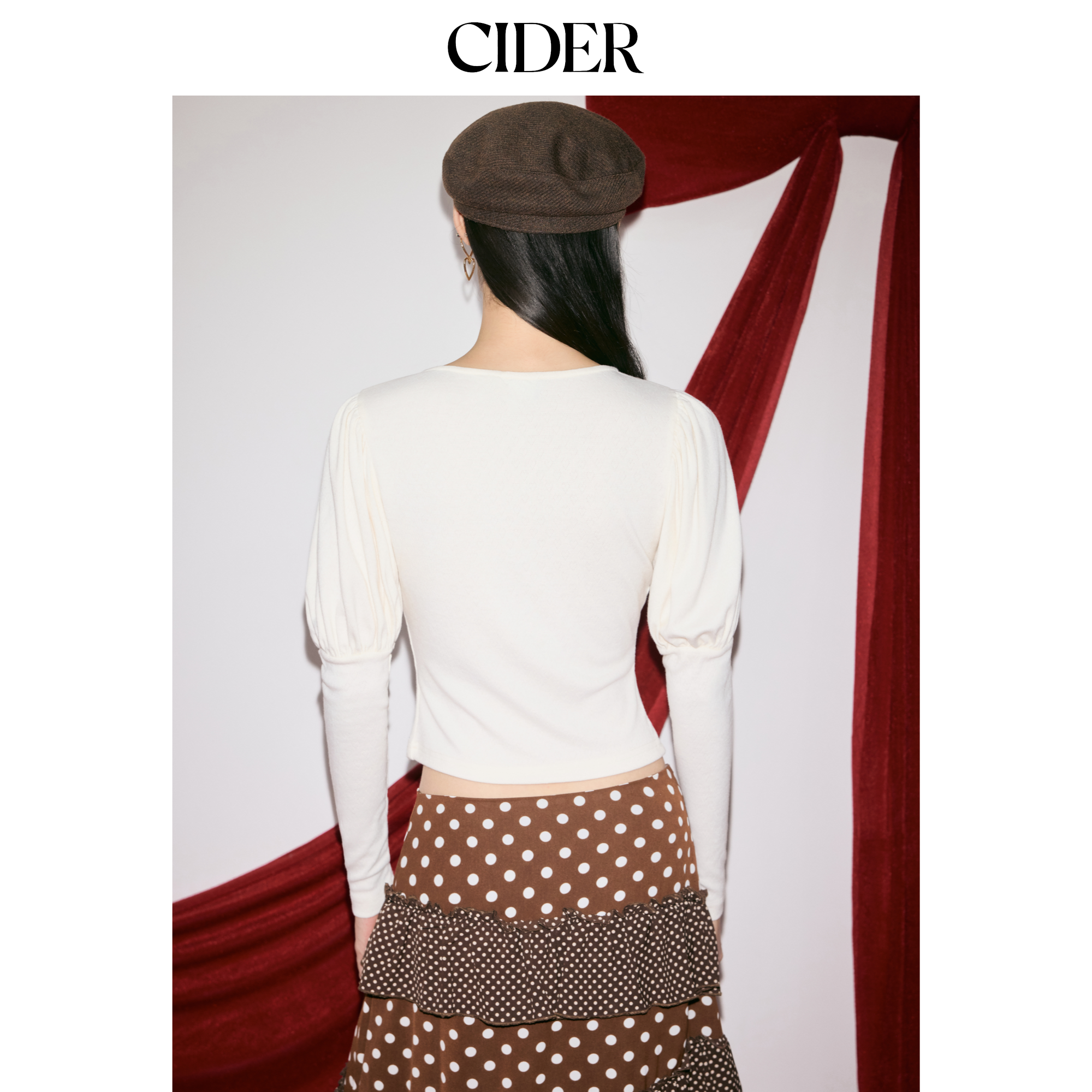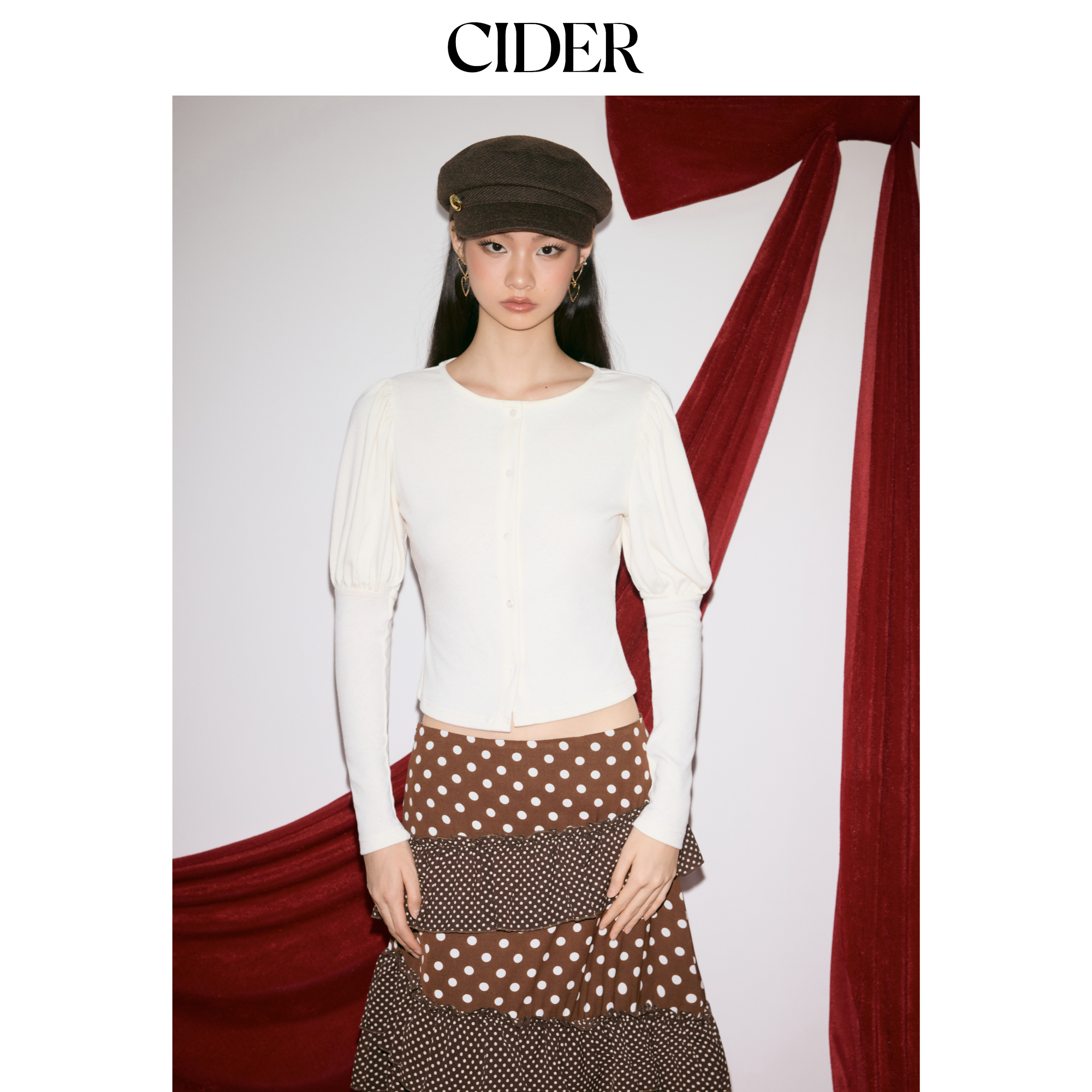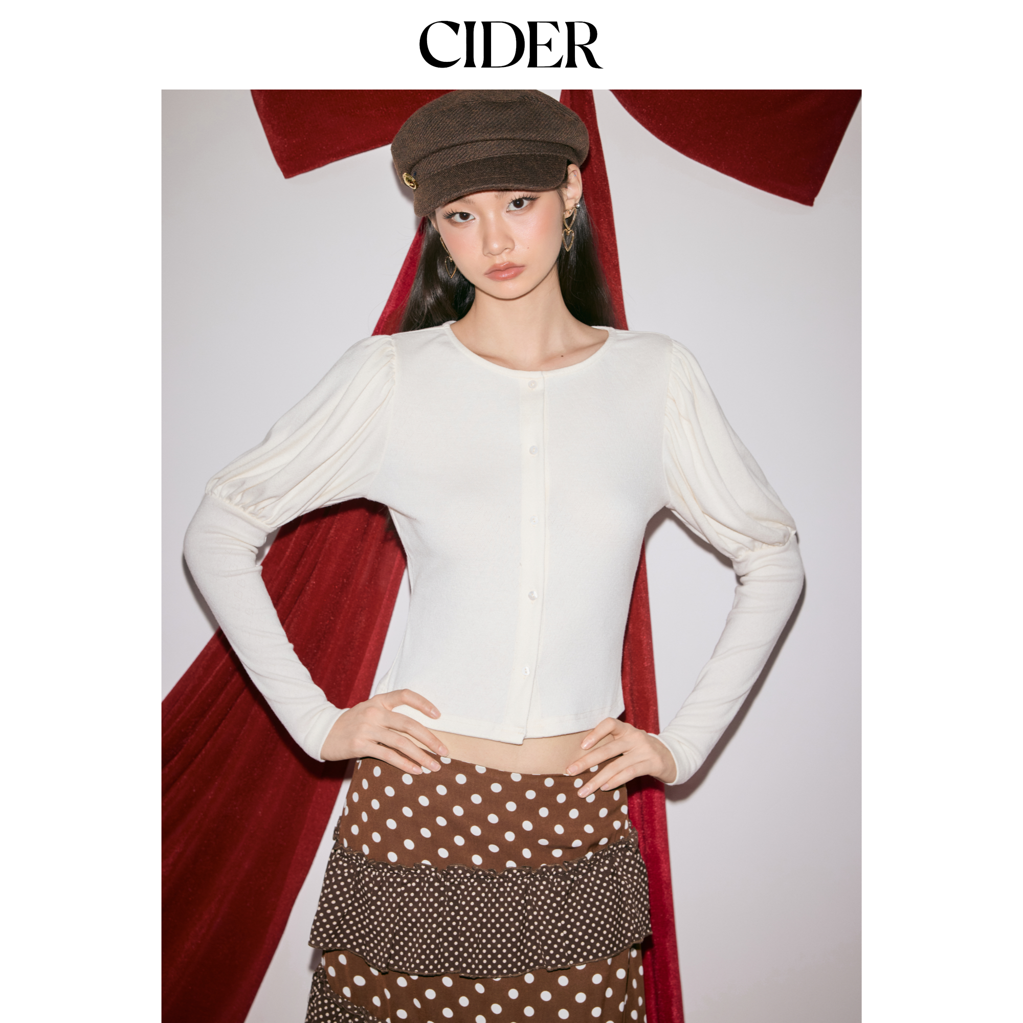 【明星同款】CIDER女装圆领纽扣朱丽叶袖美式复古上衣114909493