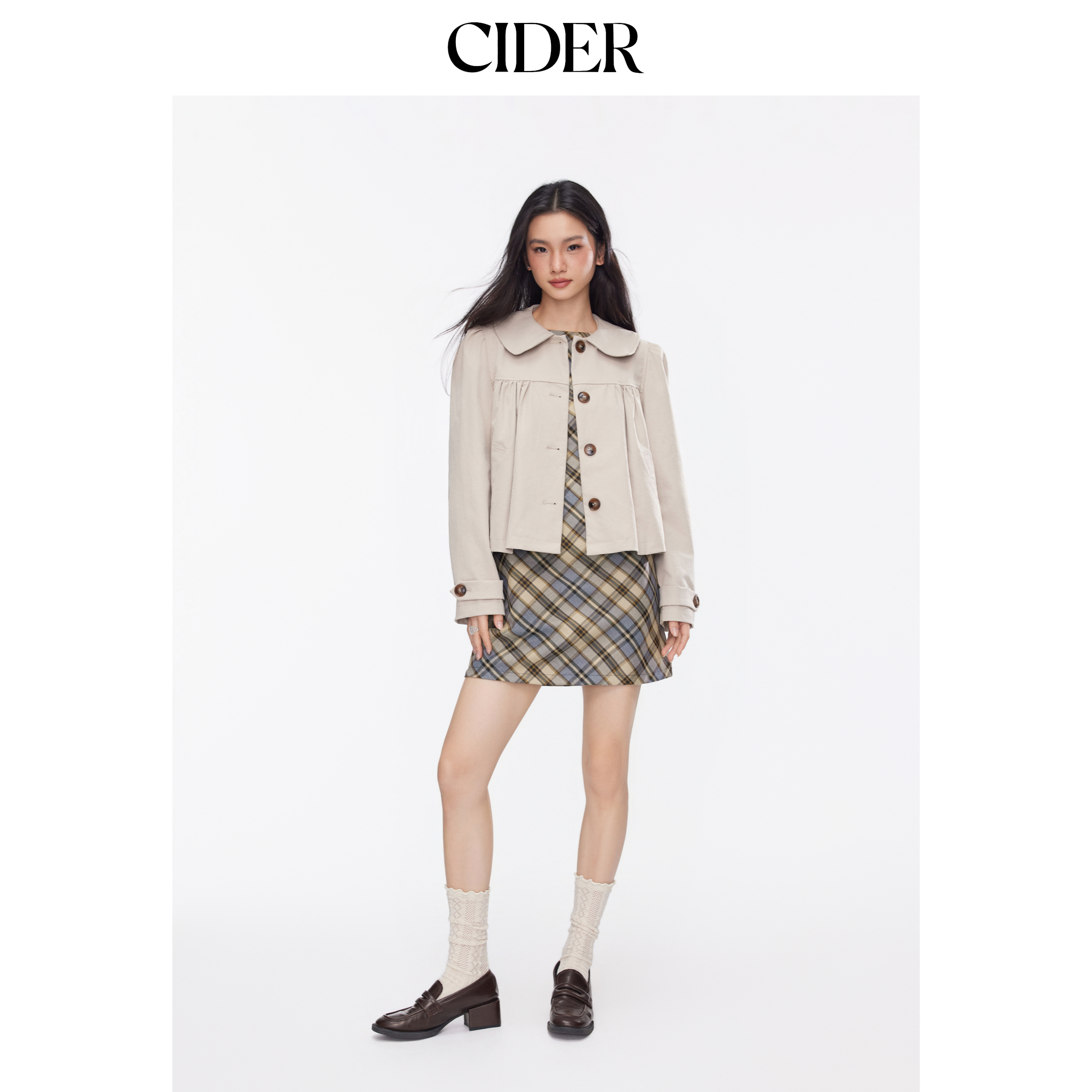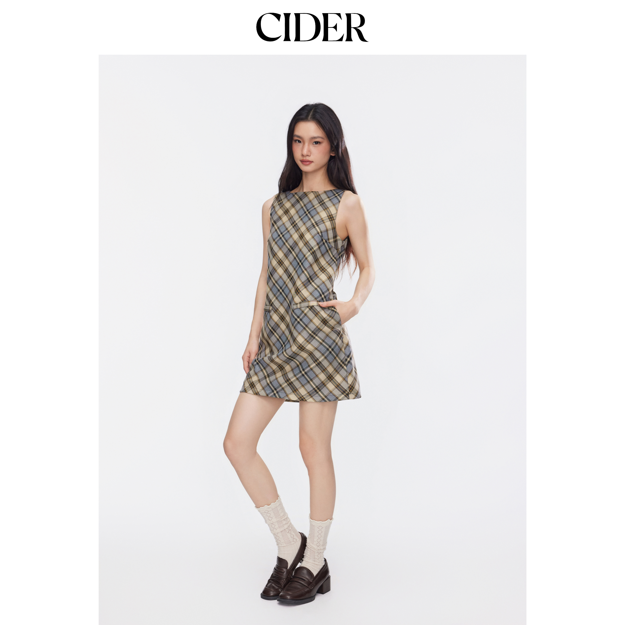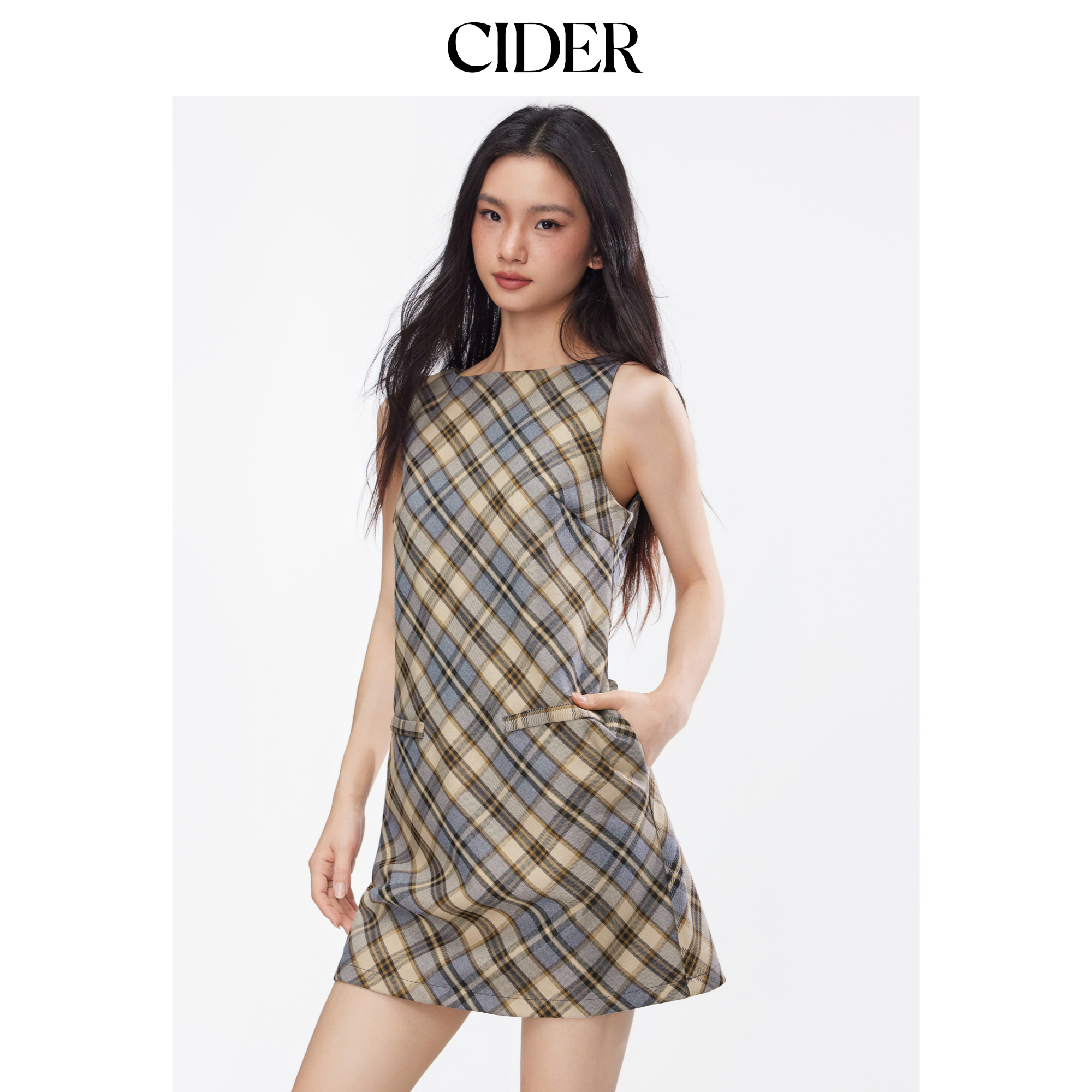 【明星同款】CIDER格纹船领设计感迷你直筒连衣裙女装114783144