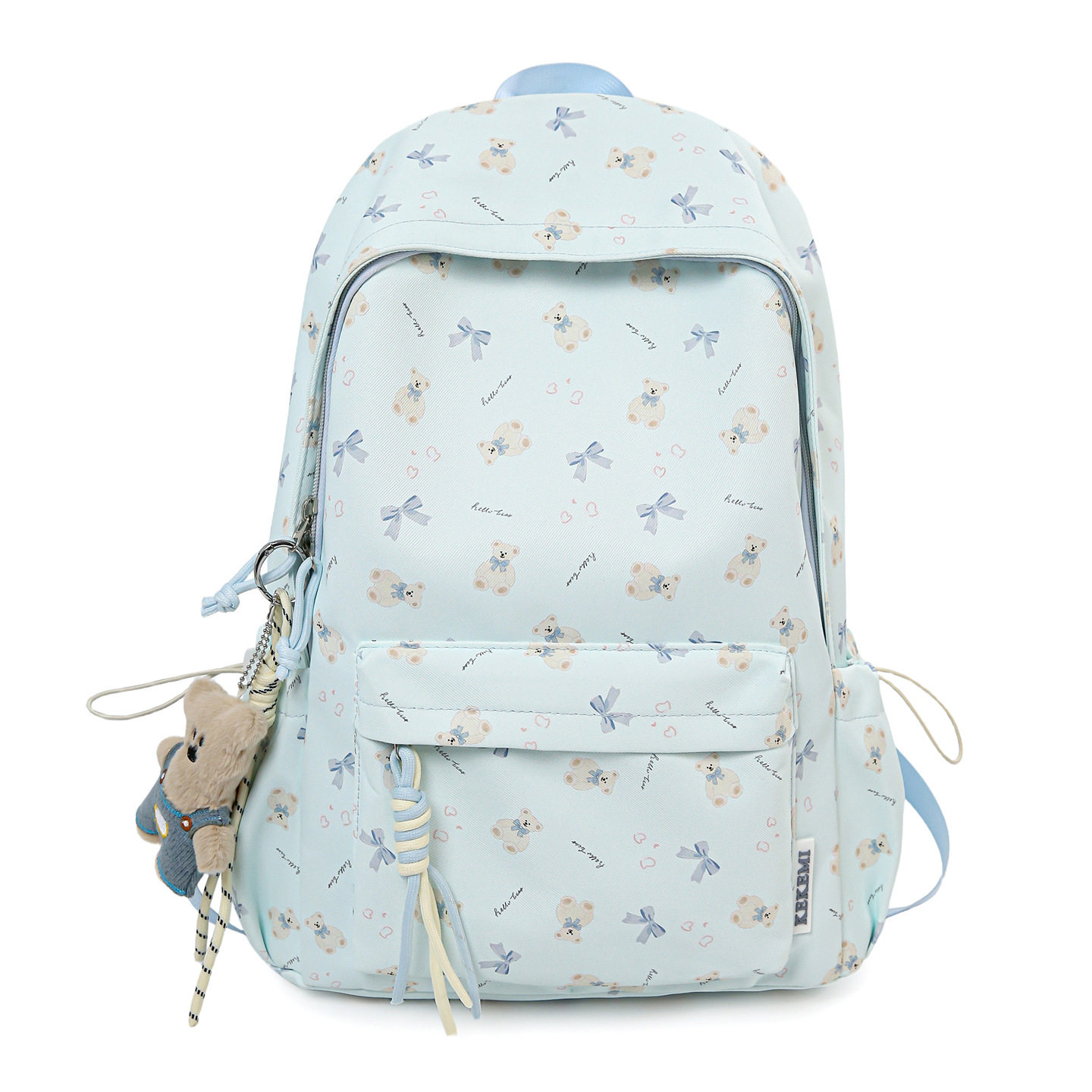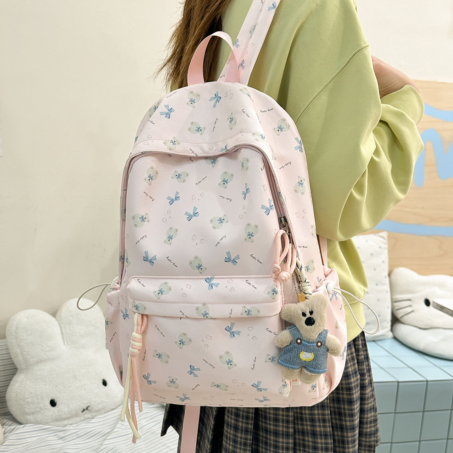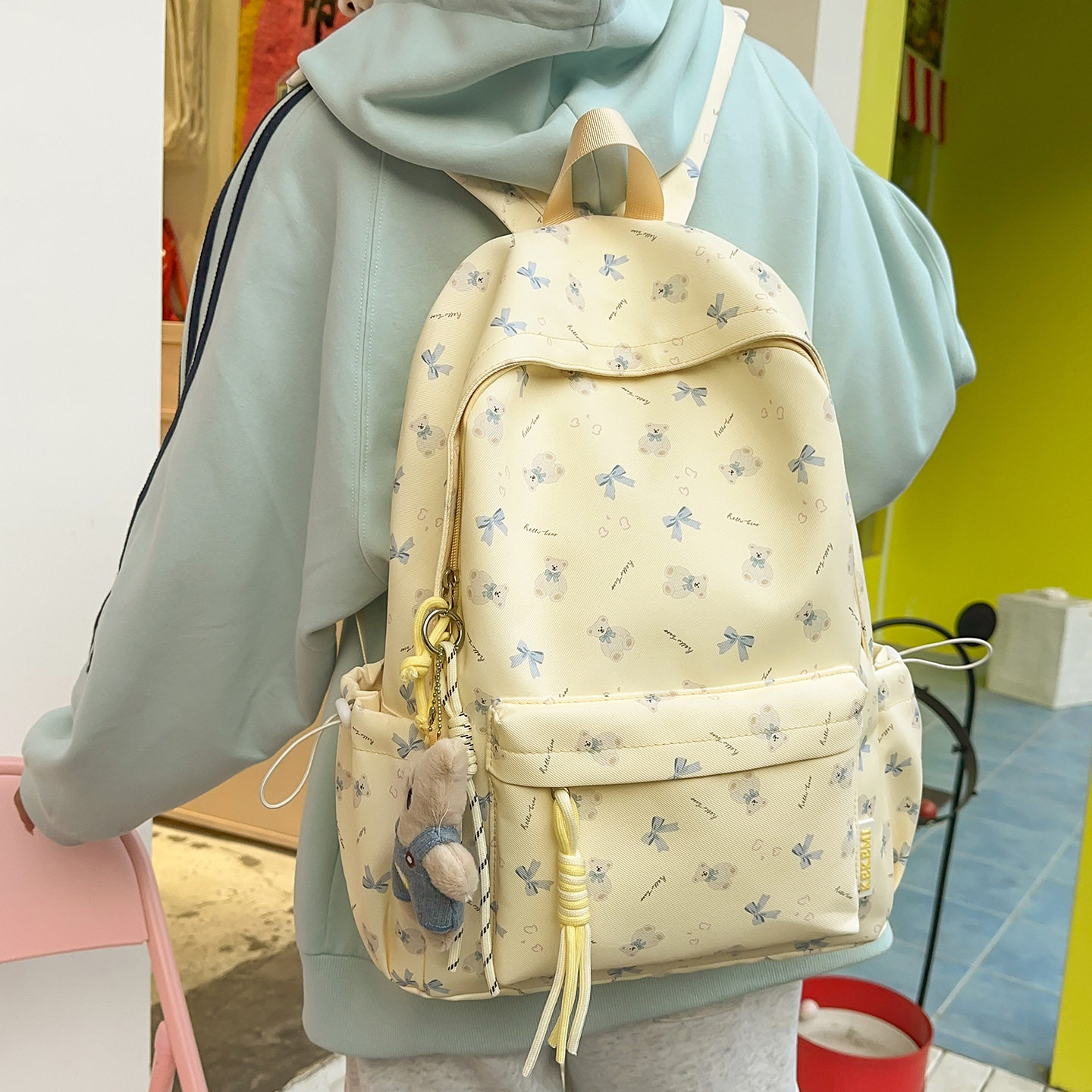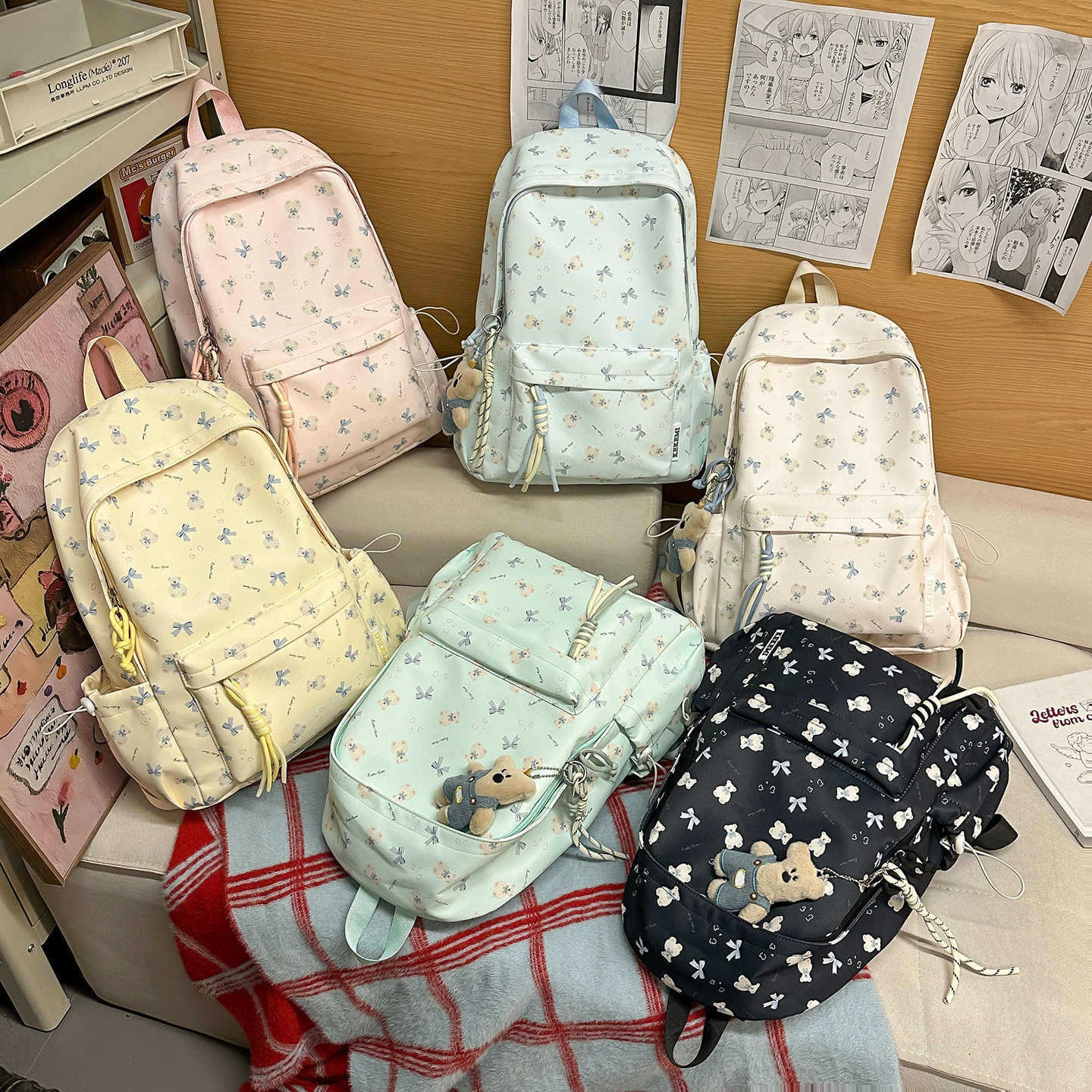 日系ins风蝴蝶结书包女大学生简约可爱印花双肩包小清新甜美背包