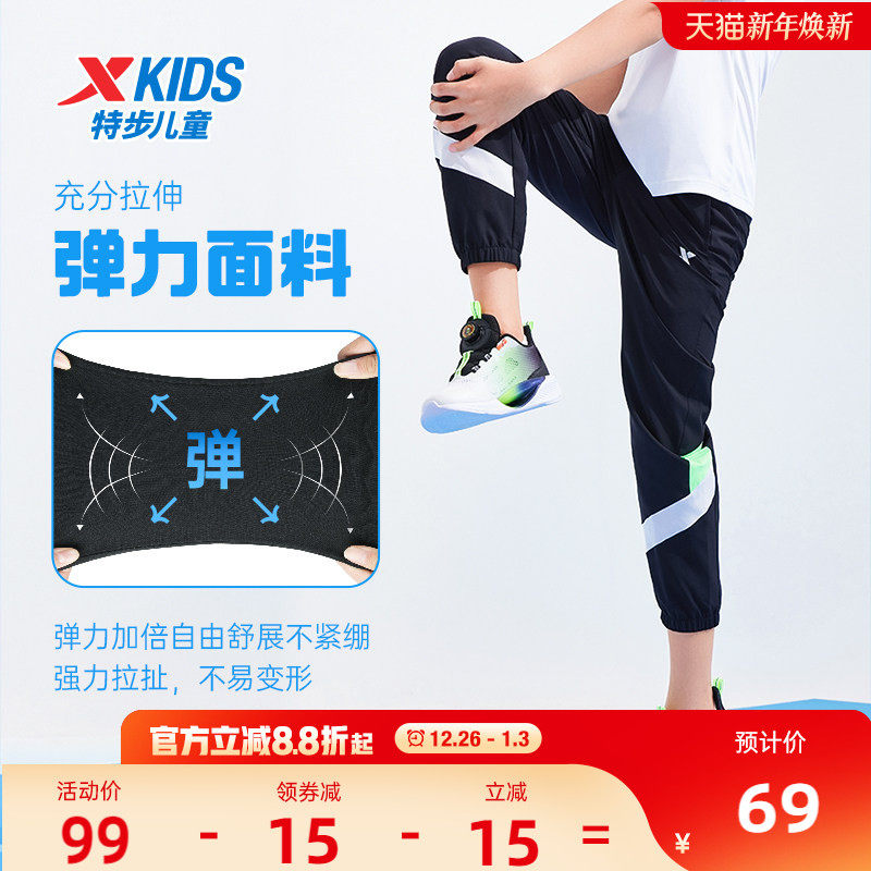 特步童装男童速干裤儿童长裤2025夏季新款大童防蚊裤薄款运动裤子