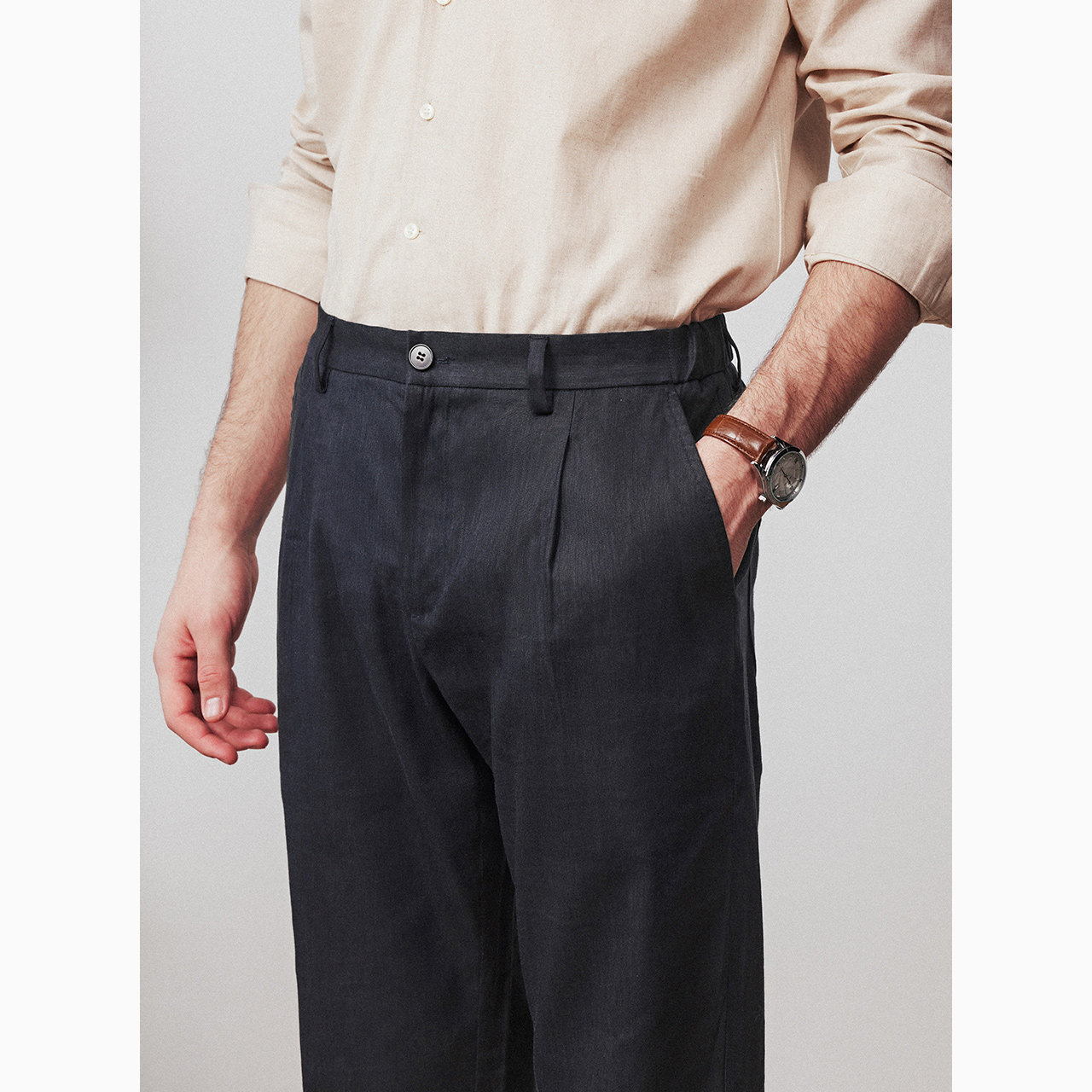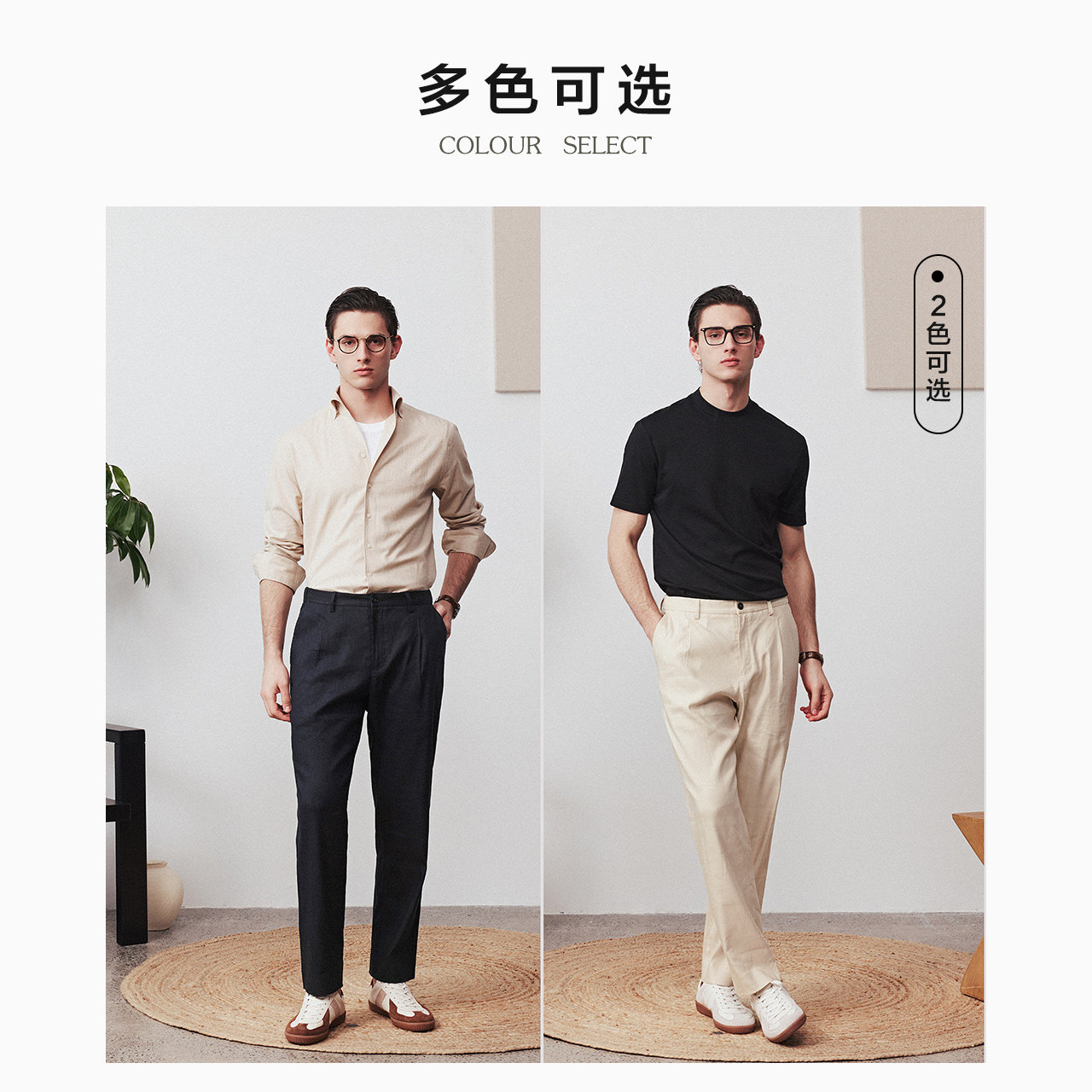 【亚麻单褶】柏品休闲裤2025年秋新男透气商务休闲通勤松紧腰长裤