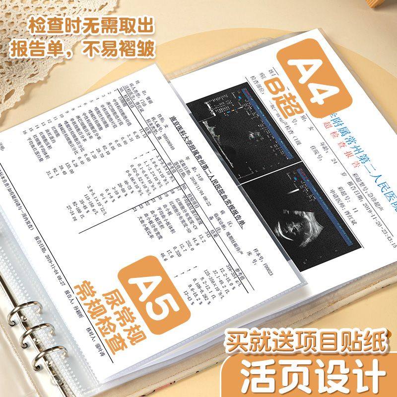 孕检收纳册布艺可折叠便携A5产检报告单收纳册活页孕妈孕妇怀孕孕期初期必备用品产检手册本资料册记录档案册