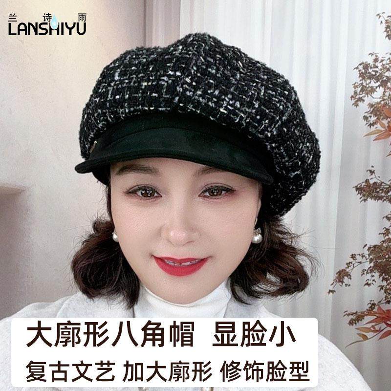 兰诗雨鸭舌贝雷帽女士秋冬季户外百搭小香风八角画家帽报童帽子女