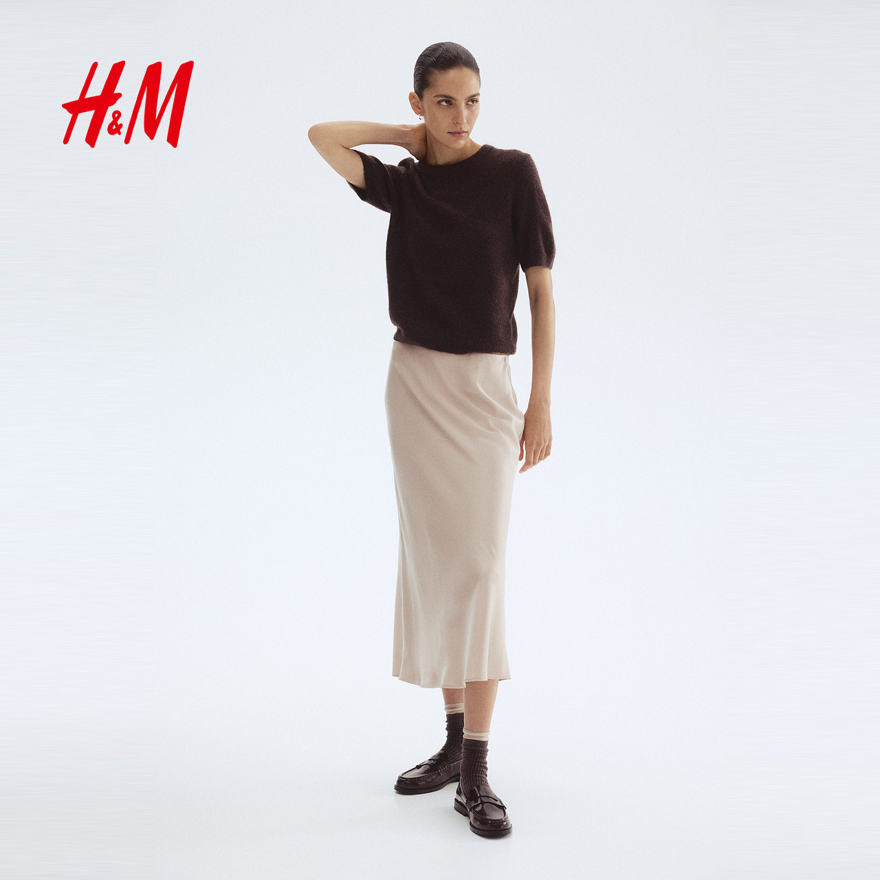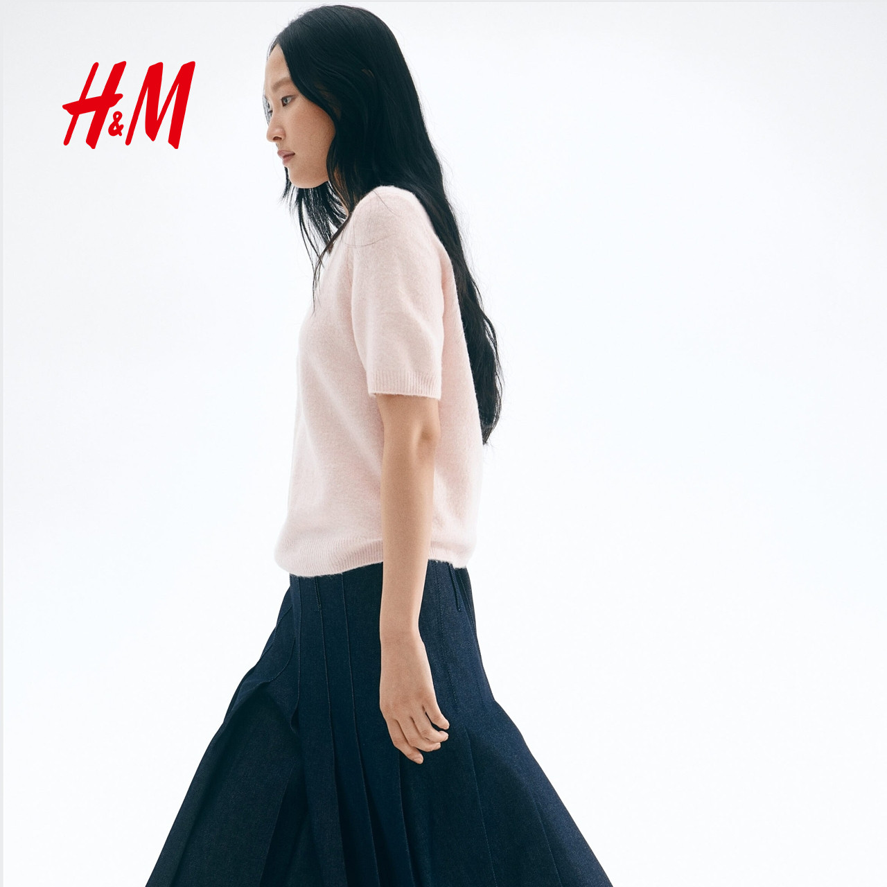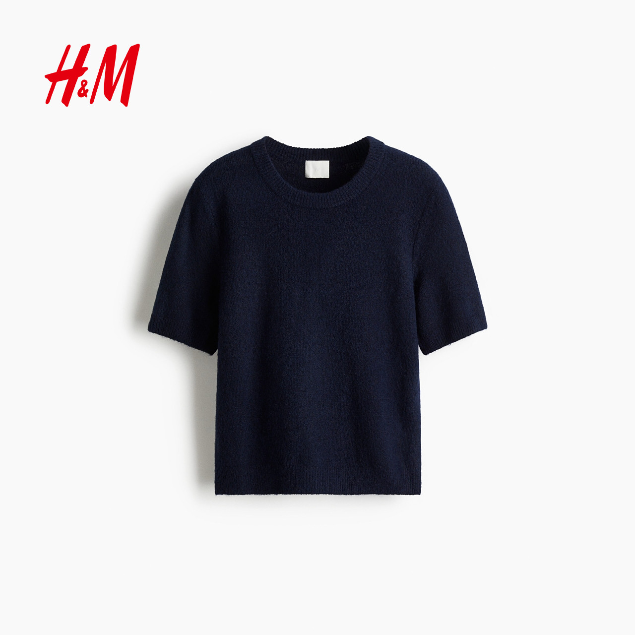 HM女装毛针织衫春季红色毛衣内搭打底衫短袖上衣1169364