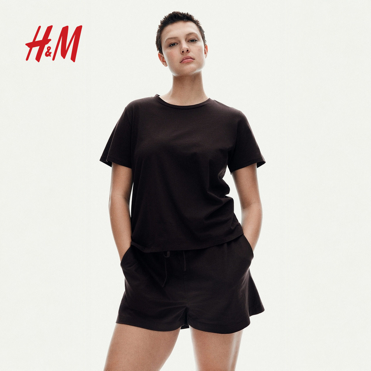 HM女装T恤春季圆领时尚休闲简约宽松棉质短袖上衣1270848