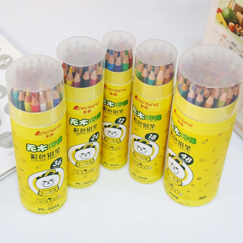 学生黄桶彩铅12色/24色/36色儿童六角杆彩色铅笔套装小学生美术铅笔绘画彩笔涂鸦笔彩铅笔筒装