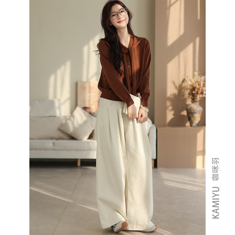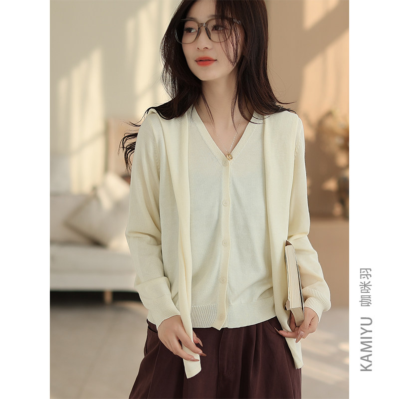 2026新款女装宽松针织开衫纯棉春秋外套纯色百搭圆领毛衣针织衫潮