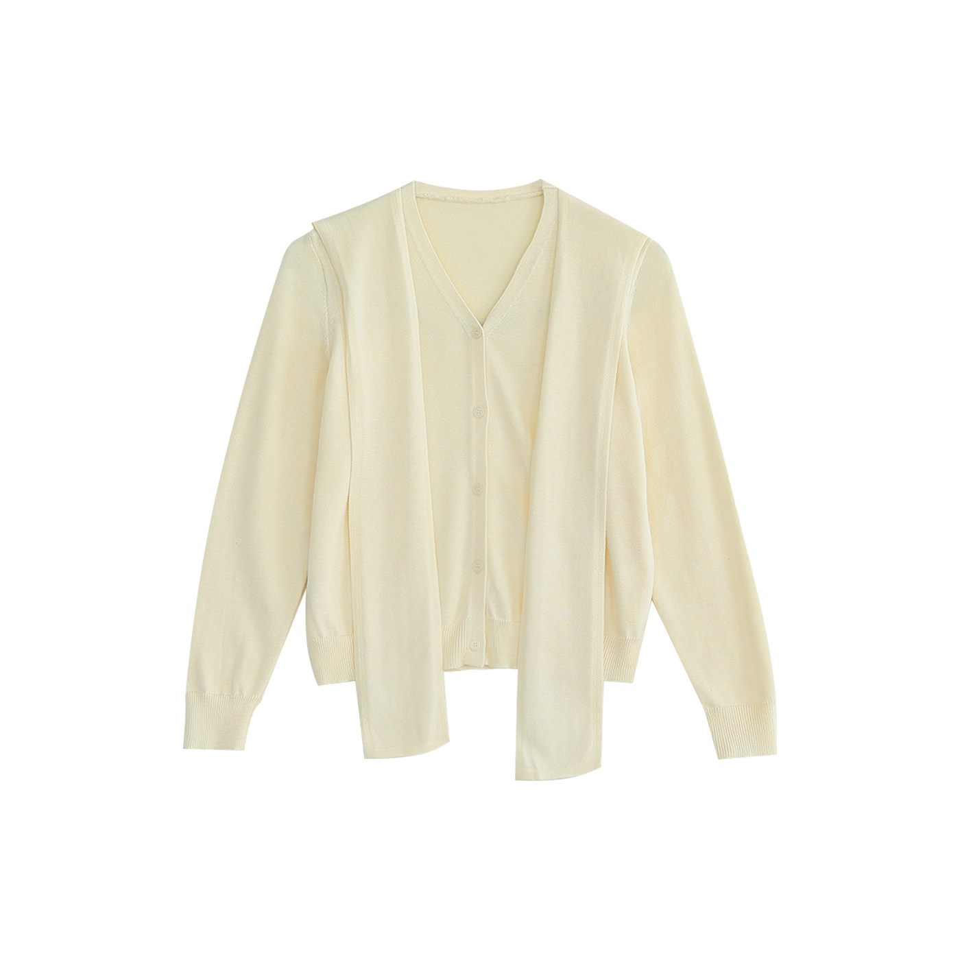 咖咪羽披肩假两件针织开衫6%羊毛混纺秋季韩版百搭显瘦长袖外套女