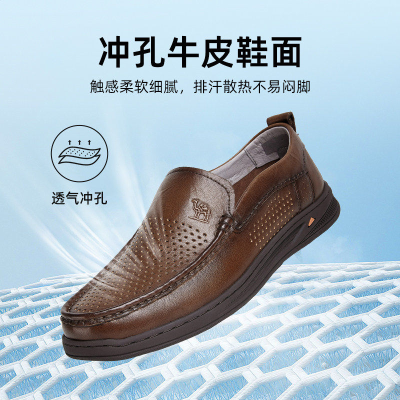 骆驼男鞋2026春季真皮男软底舒适套脚父亲礼物商务休闲皮鞋豆豆鞋