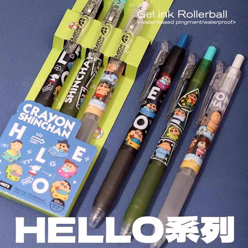 Kookei蜡笔小新联名中性笔限定套装野原新之助按动速干水笔套装0.5学生用日系动漫刷题黑笔高颜值签字笔文具