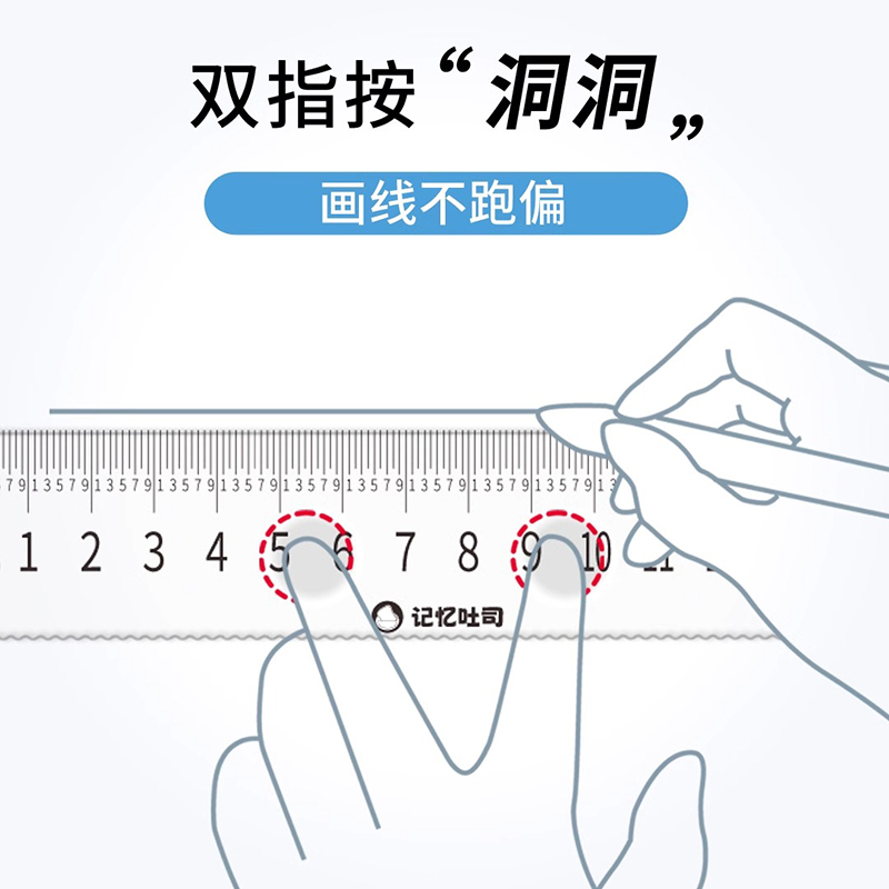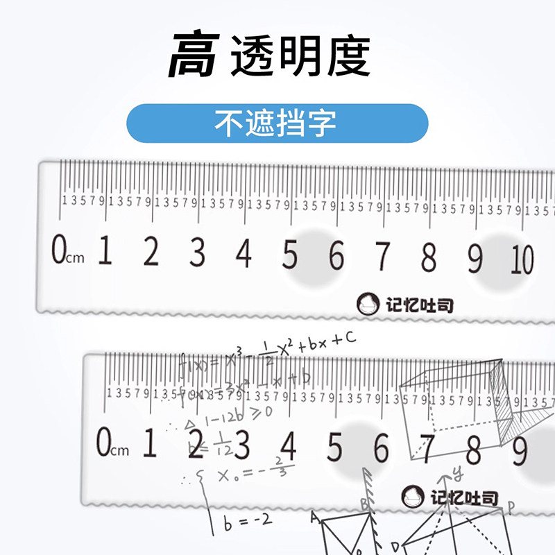 记忆吐司洞洞毫米尺透明大刻度20cm塑料尺子直尺带波浪线一年级15cm小学生初中高颜值考试文具周边专用防近视
