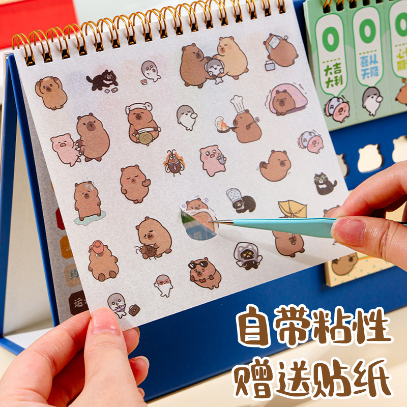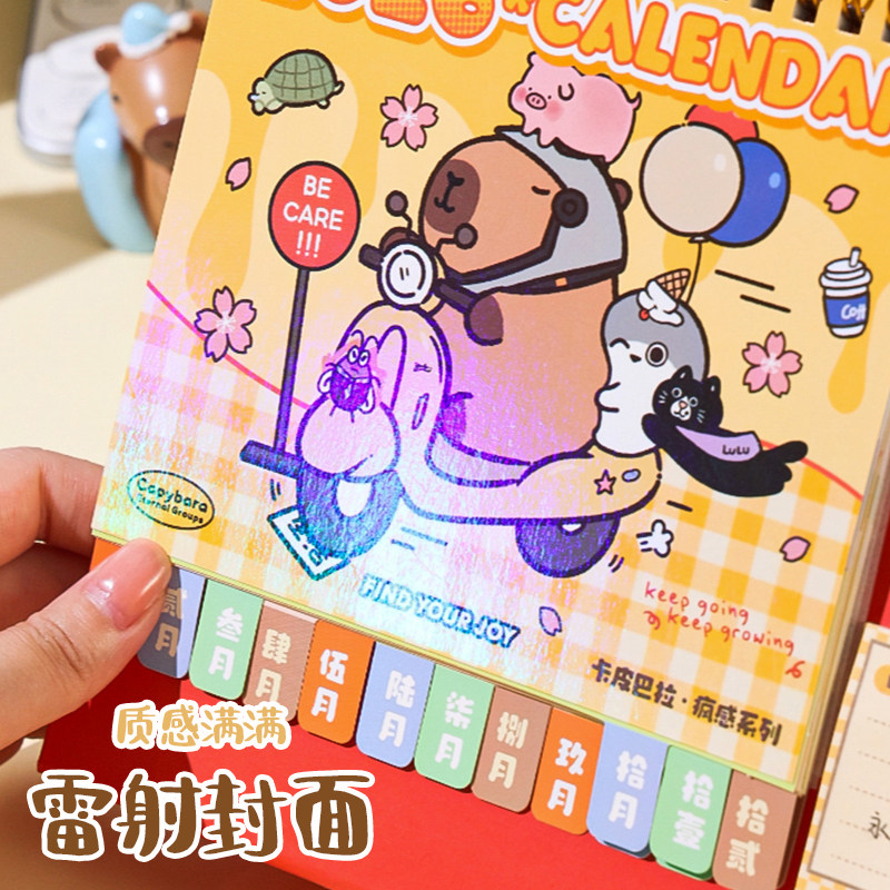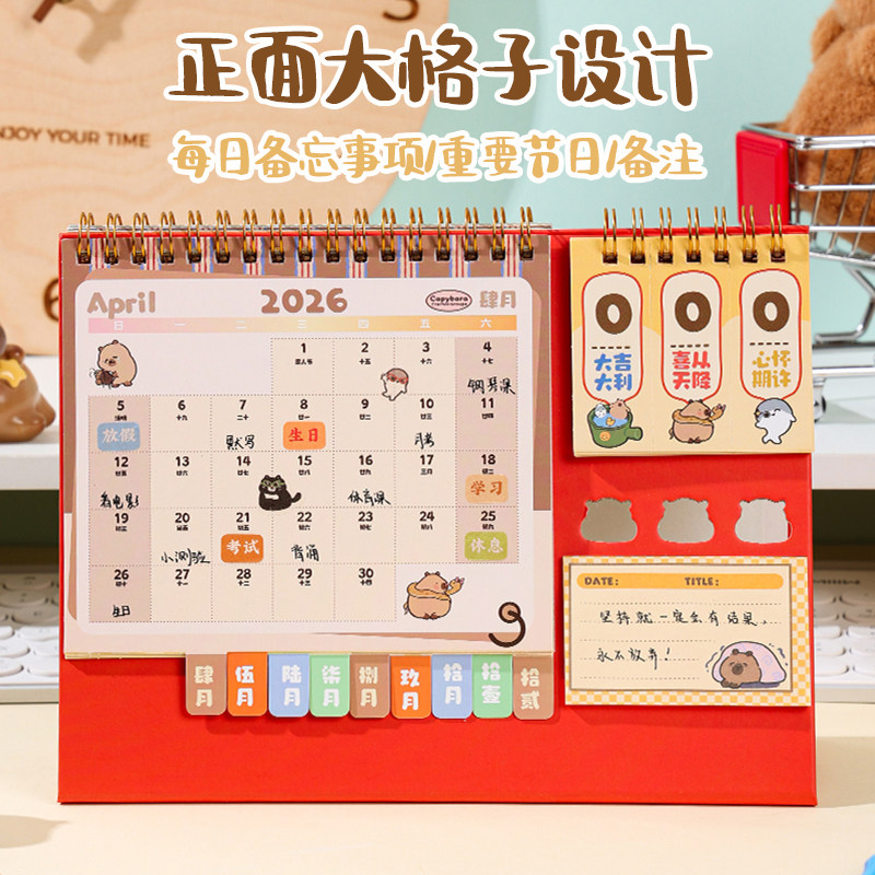 三年二班 卡皮巴拉台历2026年新款可爱日历高考倒计时学生记事本计划表备忘录创意办公室桌面摆件年历