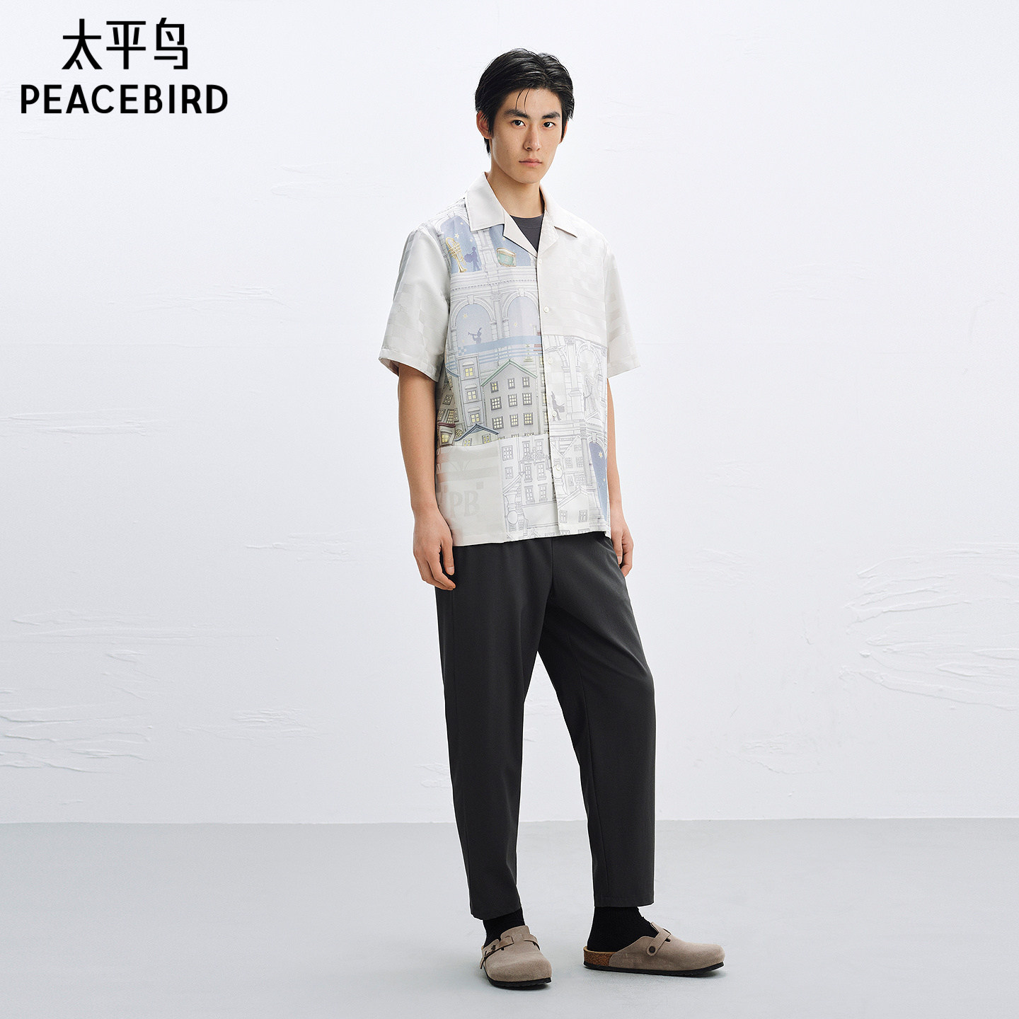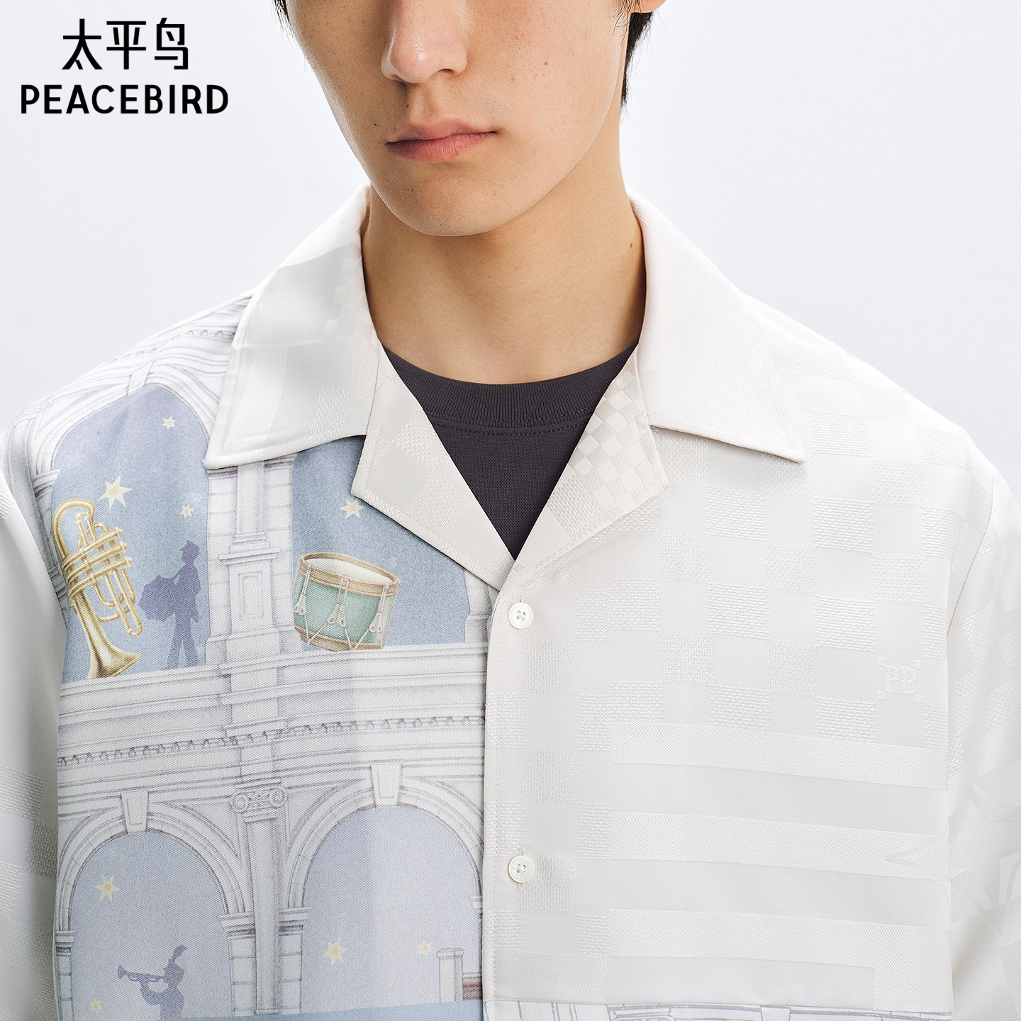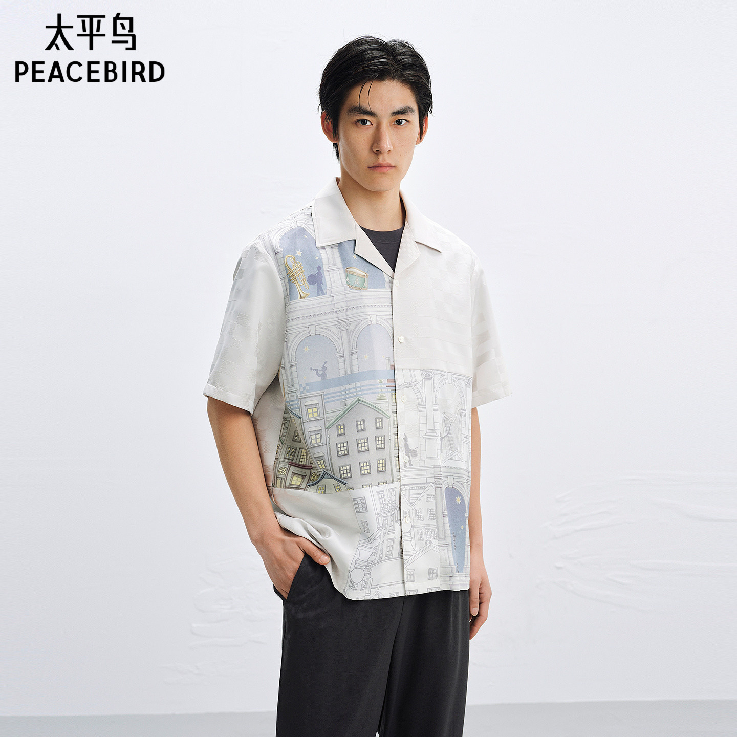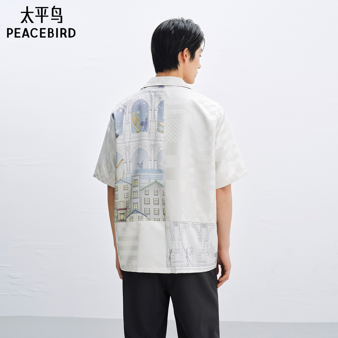 太平鸟男装 Daria Song联名外穿式提花满印夏季短袖衬衫男