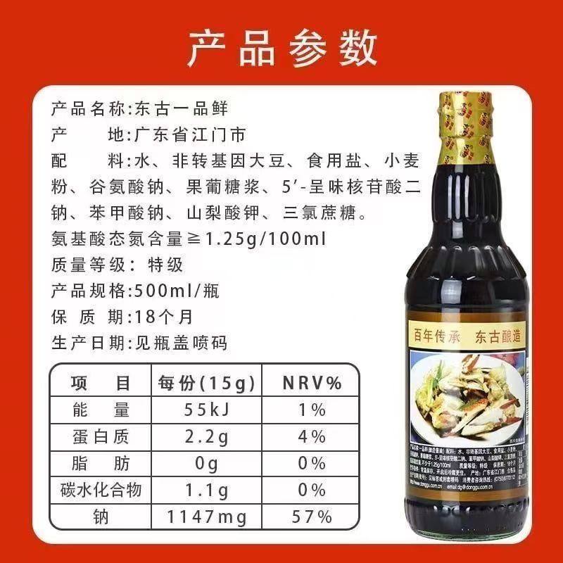 东古特级一品鲜酱油500ml/瓶黄豆酿造味极鲜炒点老字号调味品凉拌