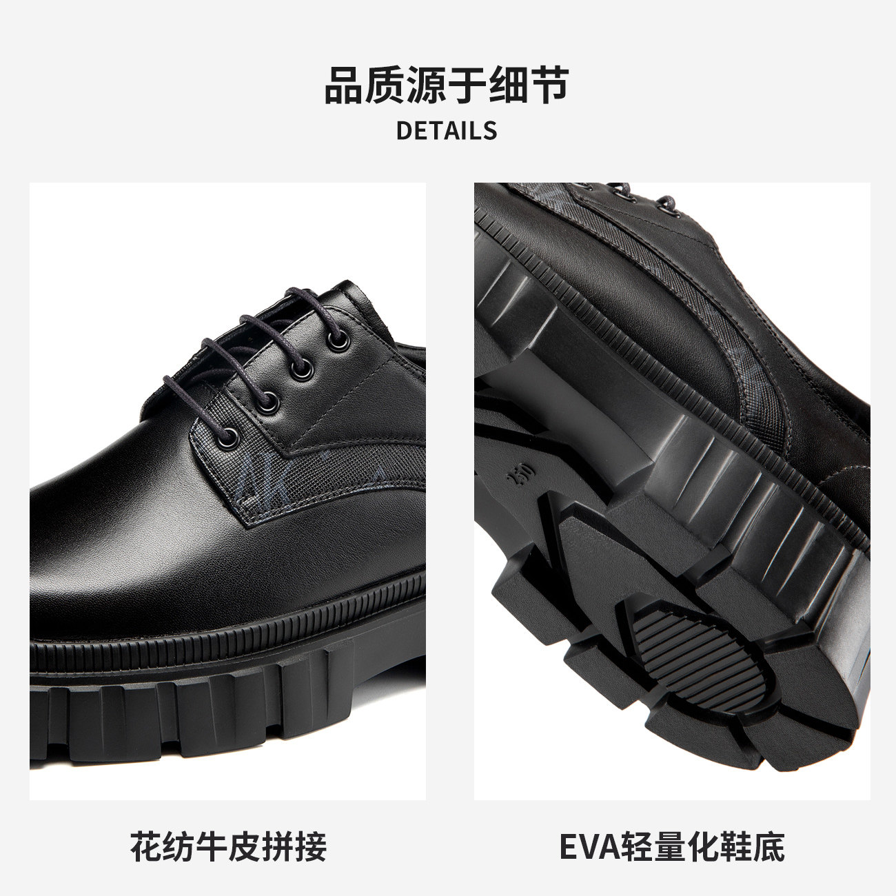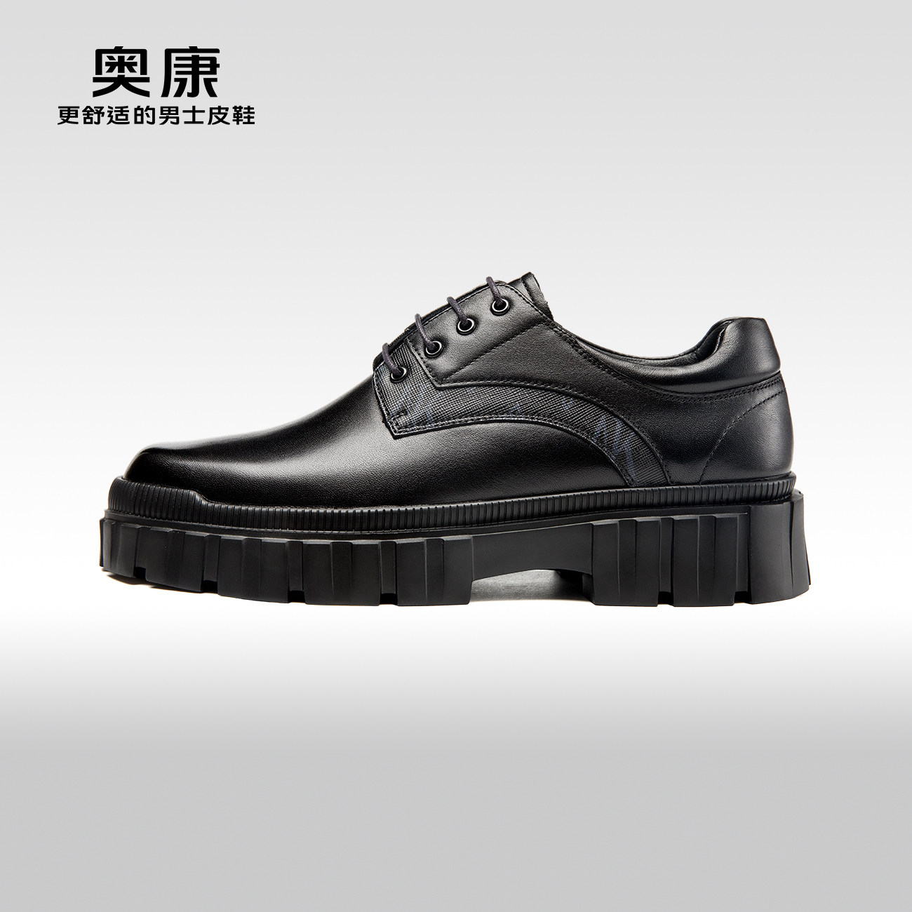 【运动皮鞋】Aokang奥康春秋季新款休闲皮鞋圆头系带厚底耐磨鞋