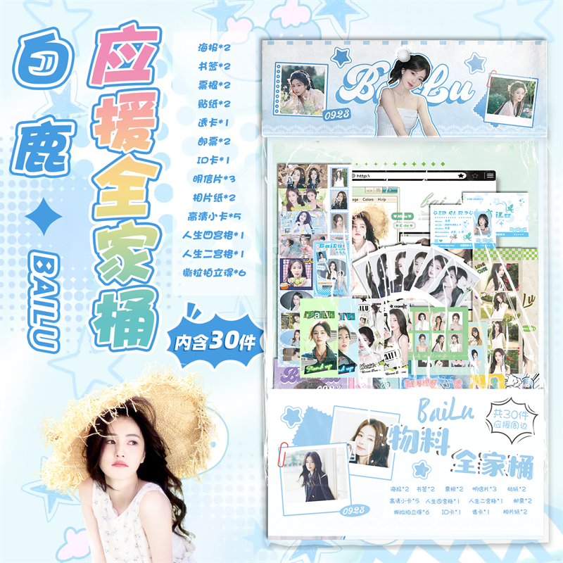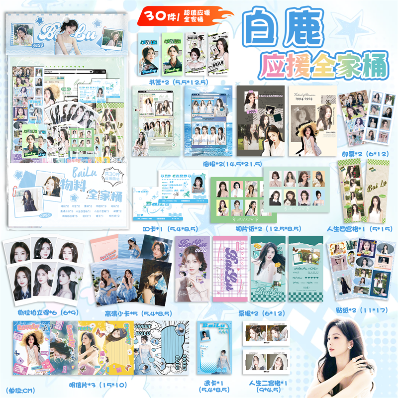 白鹿应援物料全家桶明星周边海报书签镭射小卡透卡明信片30件礼包