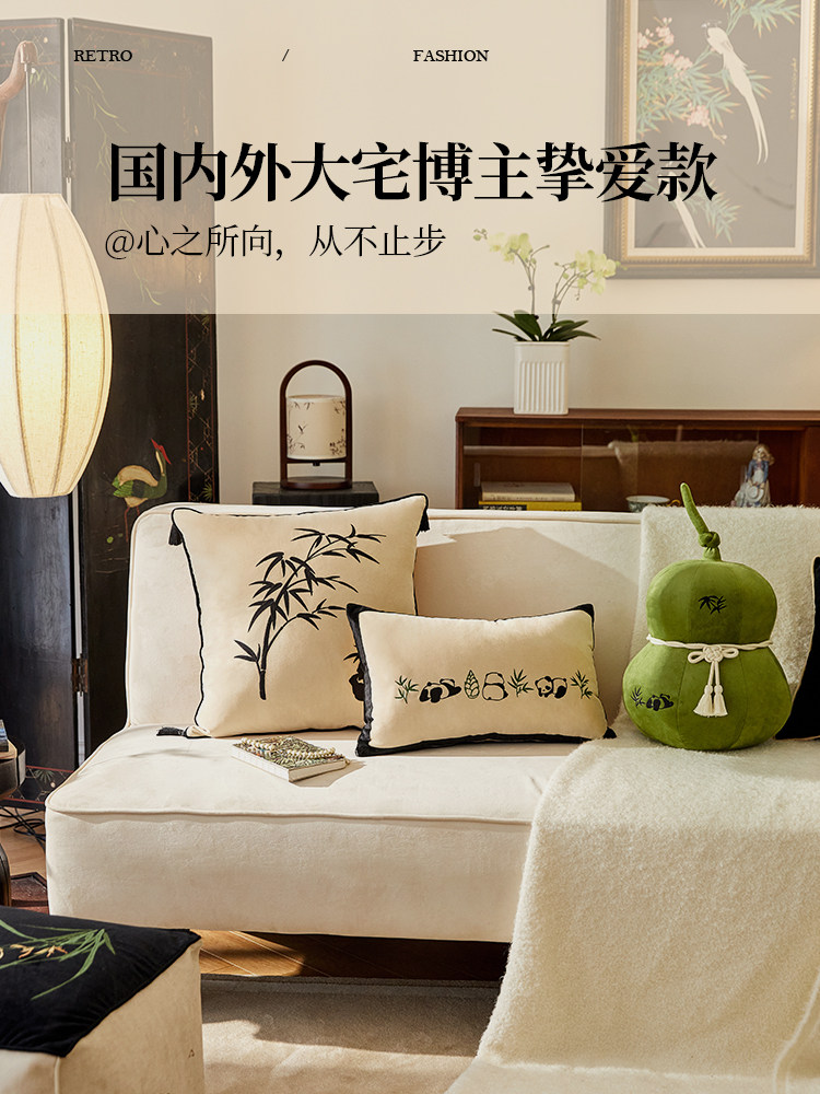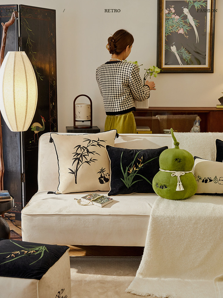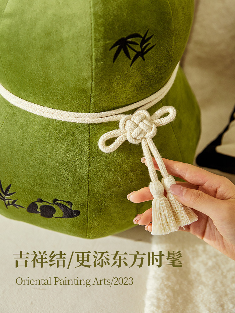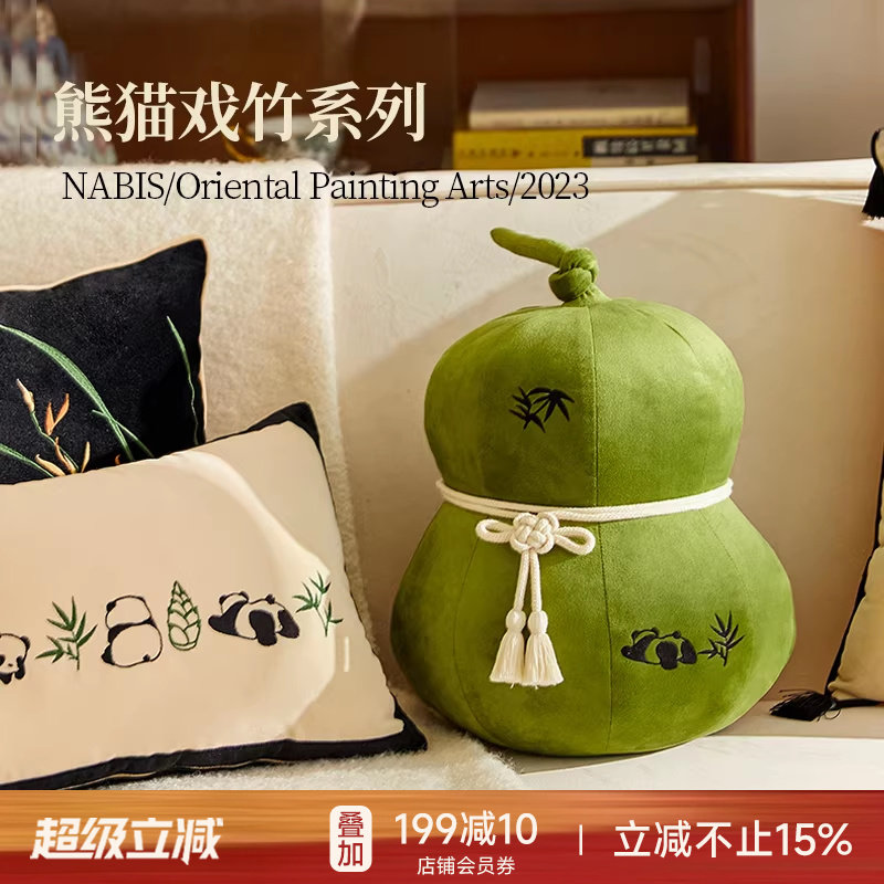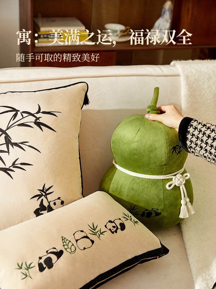 【第3件0元专区】蜡笔派熊猫戏竹异形抱枕复古沙发靠垫刺绣靠枕