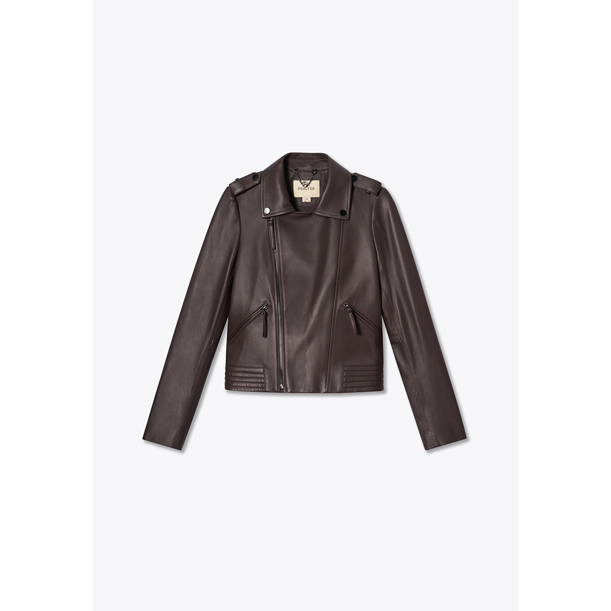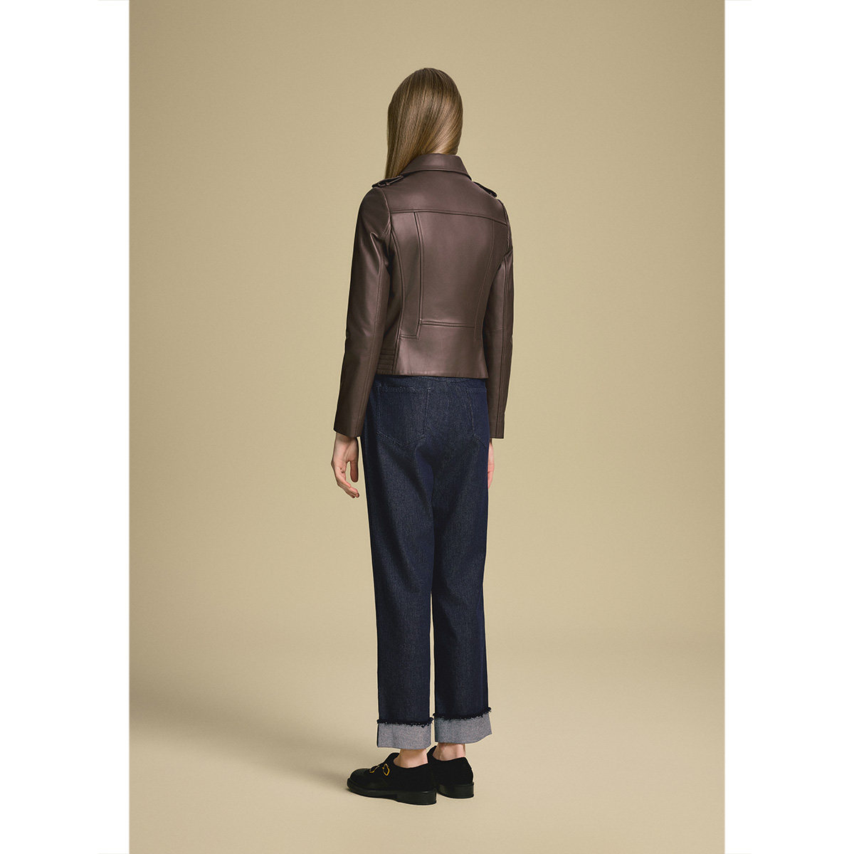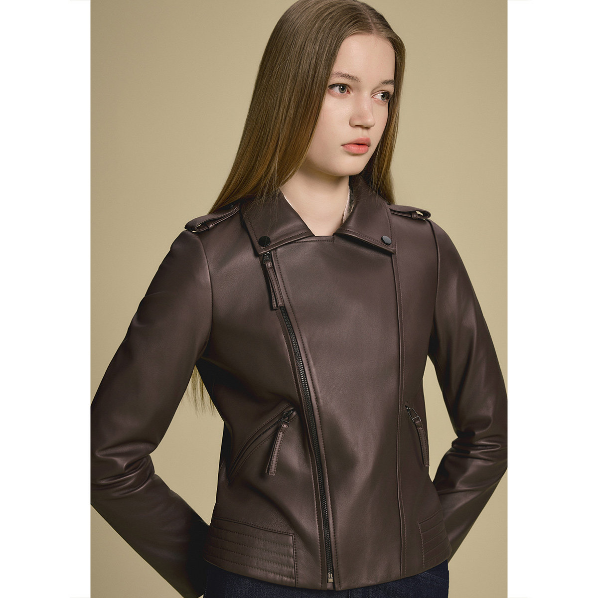 Eland衣恋皮衣女纯色带拉链长袖翻领外套2025冬季新款