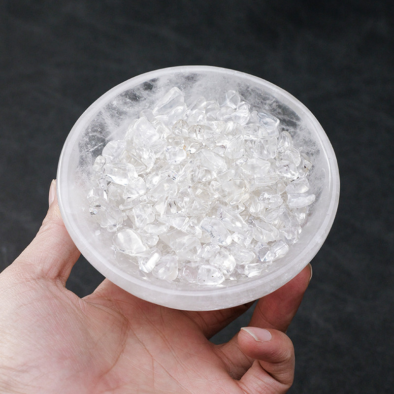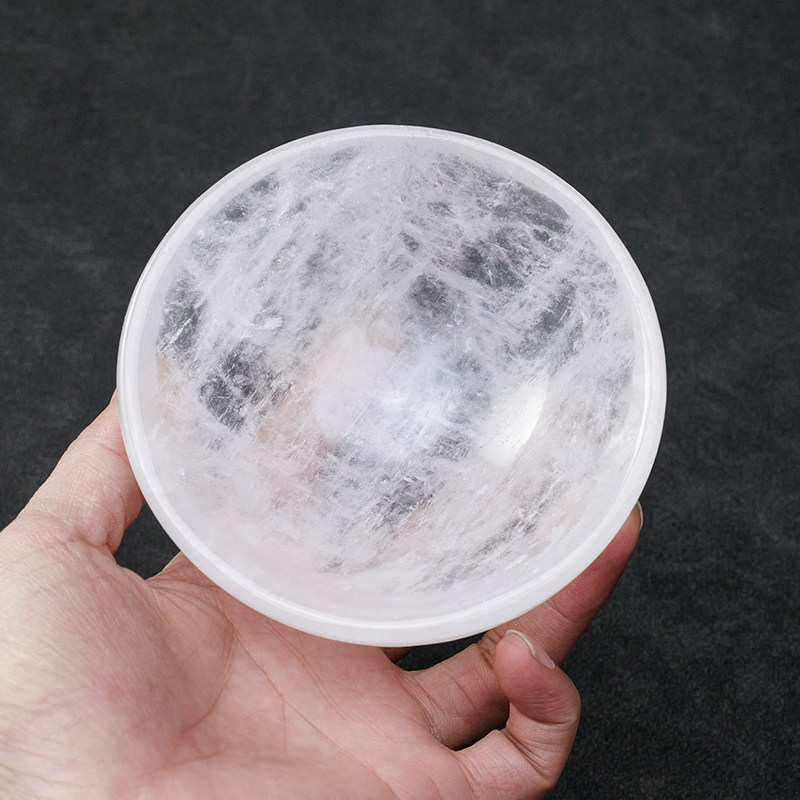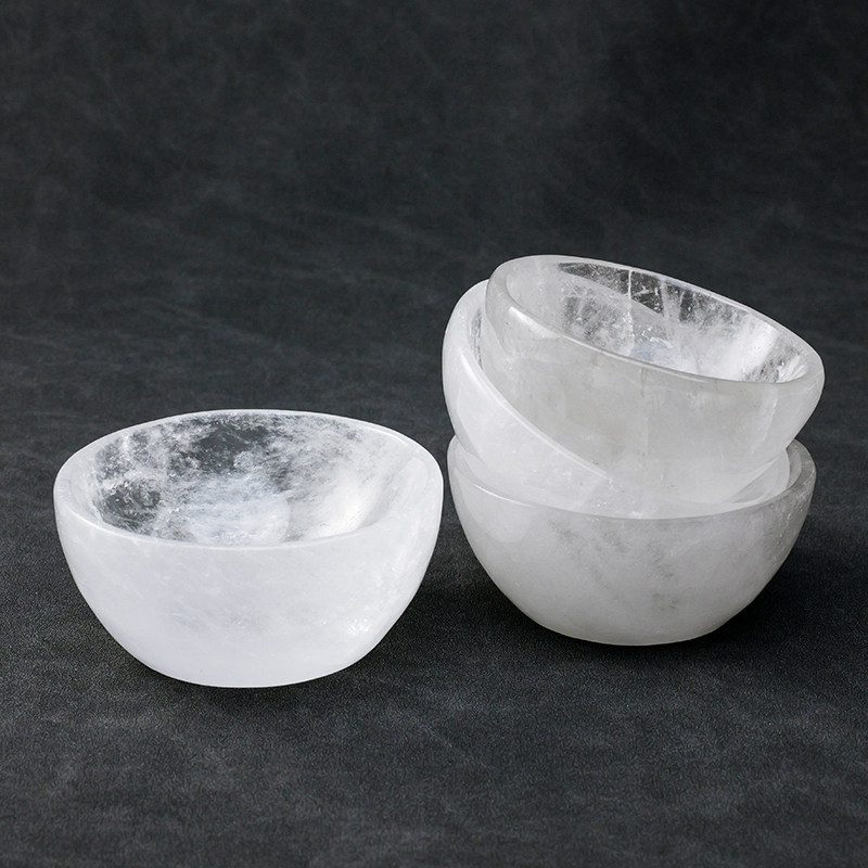 天然白水晶消磁碗原矿石打磨手链净化消磁碗收藏礼物聚宝盆摆件