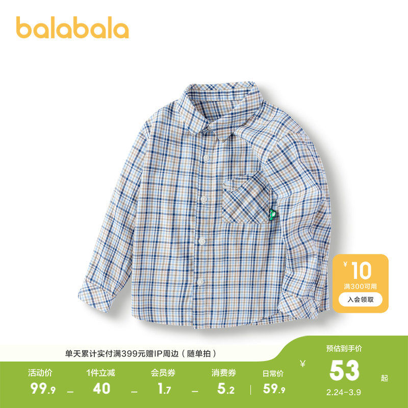巴拉巴拉童装男童经典格纹衬衫新款春装潮流上衣