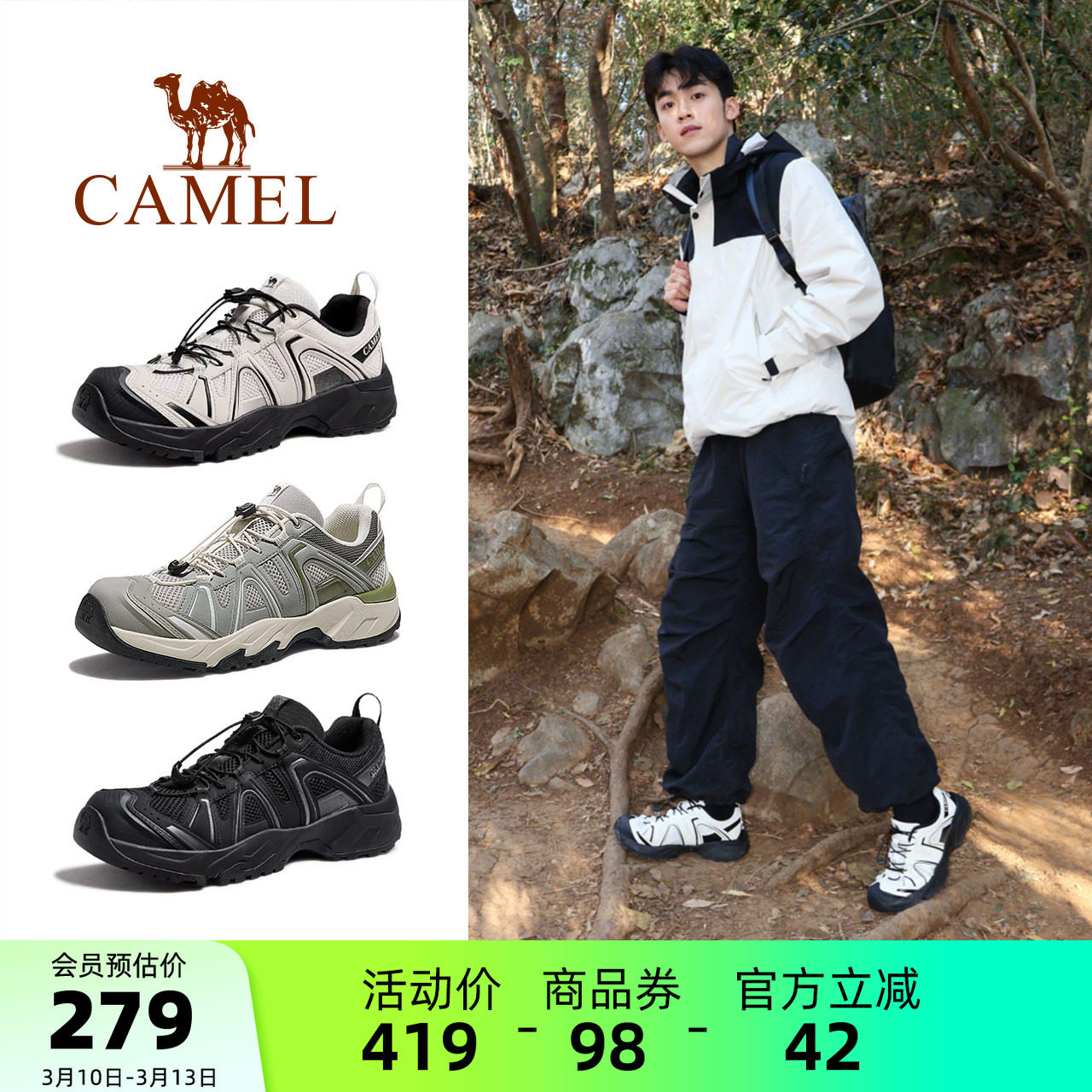【王俊凯同款】骆驼云山2代春季男鞋透气运动鞋登山鞋户外徒步鞋