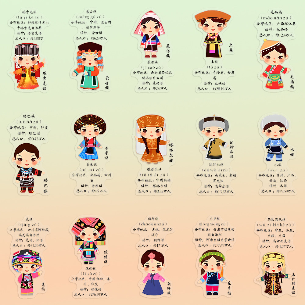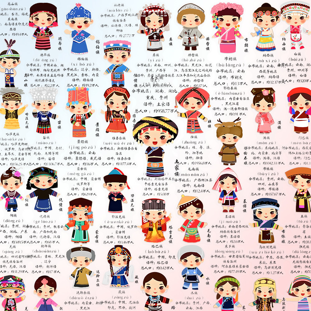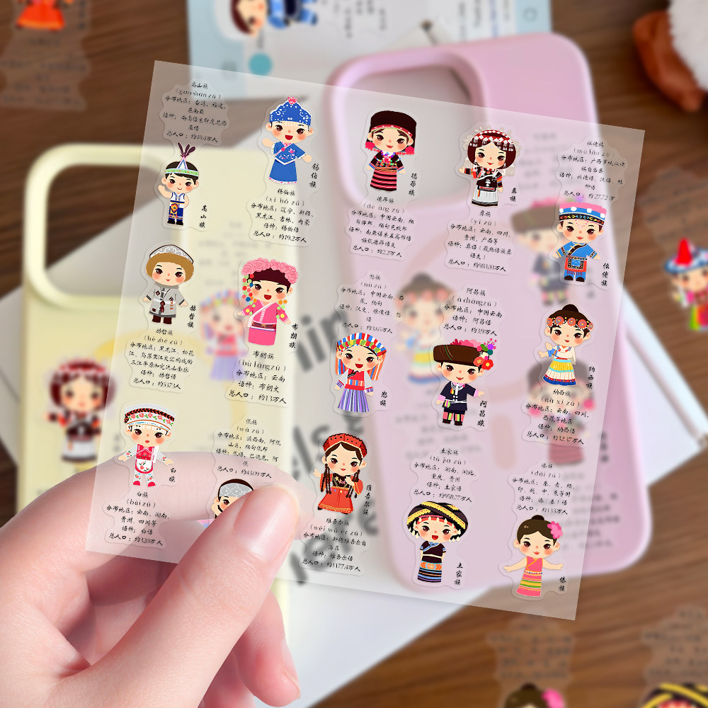 【透明款】56个民族图鉴贴纸少数民族传统服饰文化知识装饰贴画
