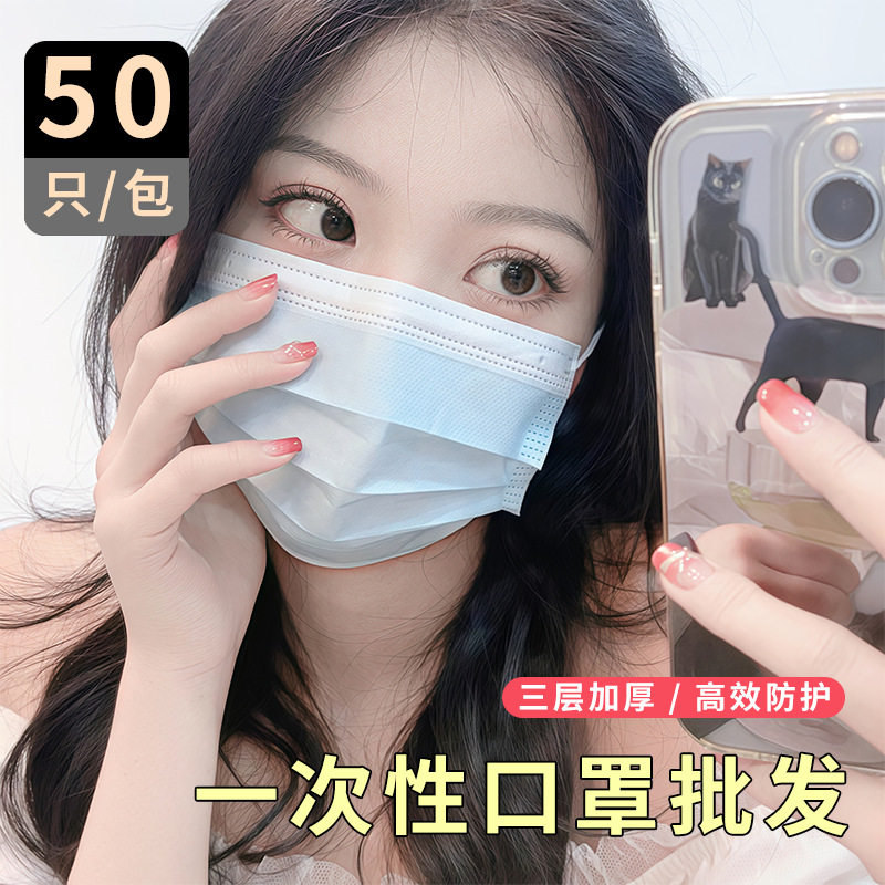 一次性三层无纺布口罩熔喷成人防尘薄款防护独立现货