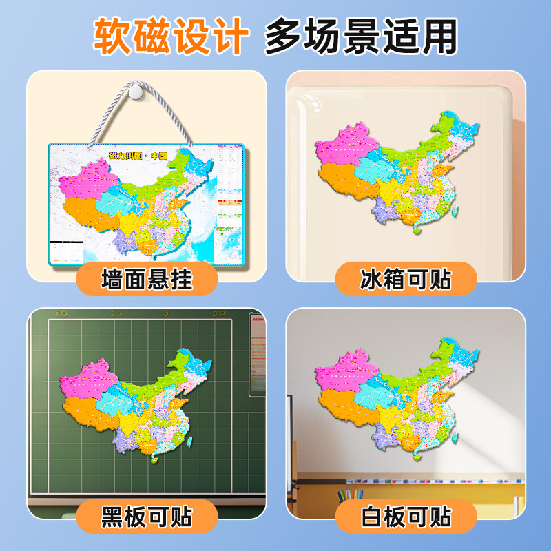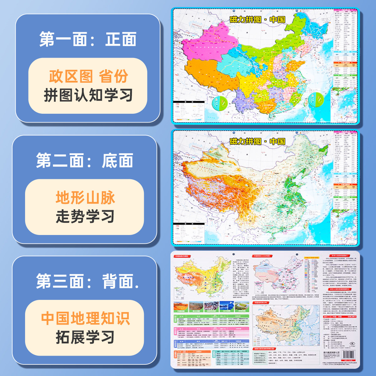 得力中国地图磁力拼图儿童版世界3到6岁以上益智玩具地理专注力