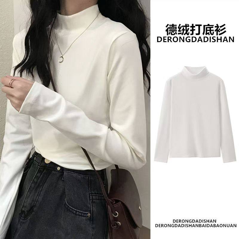 半高领德绒内搭打底衫女秋冬2025新款韩版洋气时尚上衣加绒保暖
