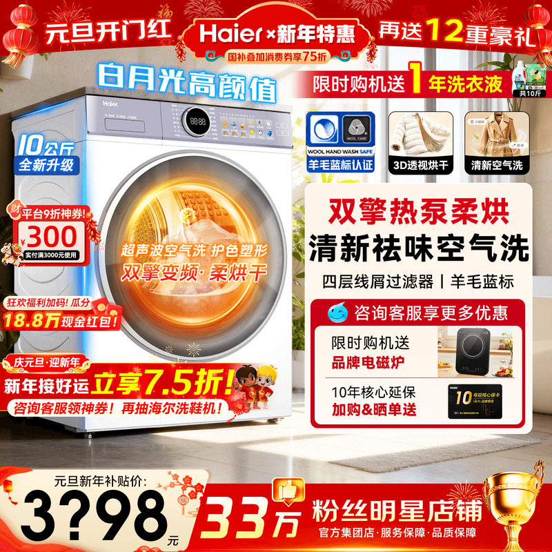 【云溪4.0】海尔热泵烘干机77E家用滚筒10KG大容量变频除菌干衣机