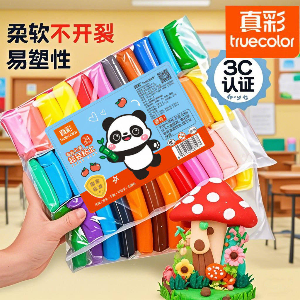 真彩无毒超轻粘土补充装12色24色36色儿童幼儿园橡皮泥安全手工制作diy材料工具黏土小学生太空彩泥玩具套装
