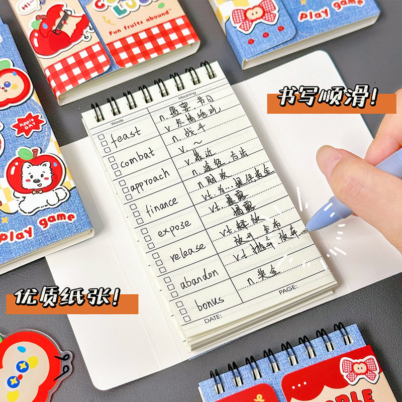 可爱苹果英语背单词本记忆本随身便携式考研高中高考日语小号笔记本专升本艾宾浩斯小本子文具可遮挡口袋本