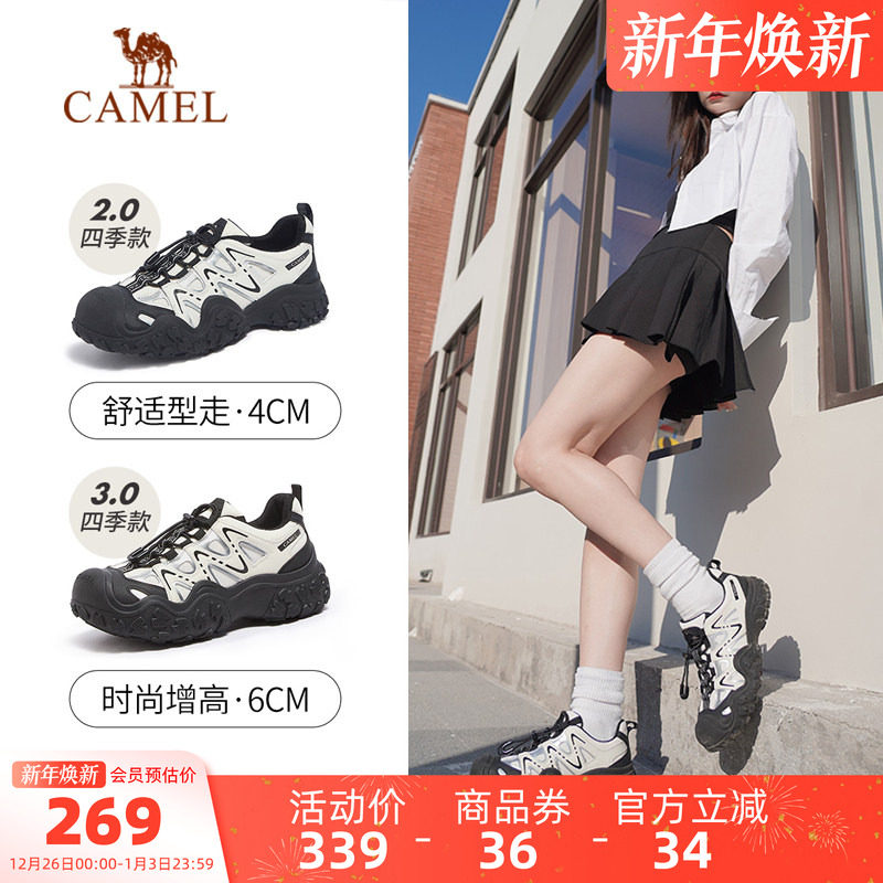 骆驼丑萌鞋女鞋秋季户外运动鞋女厚底老爹鞋徒步登山时尚休闲鞋子