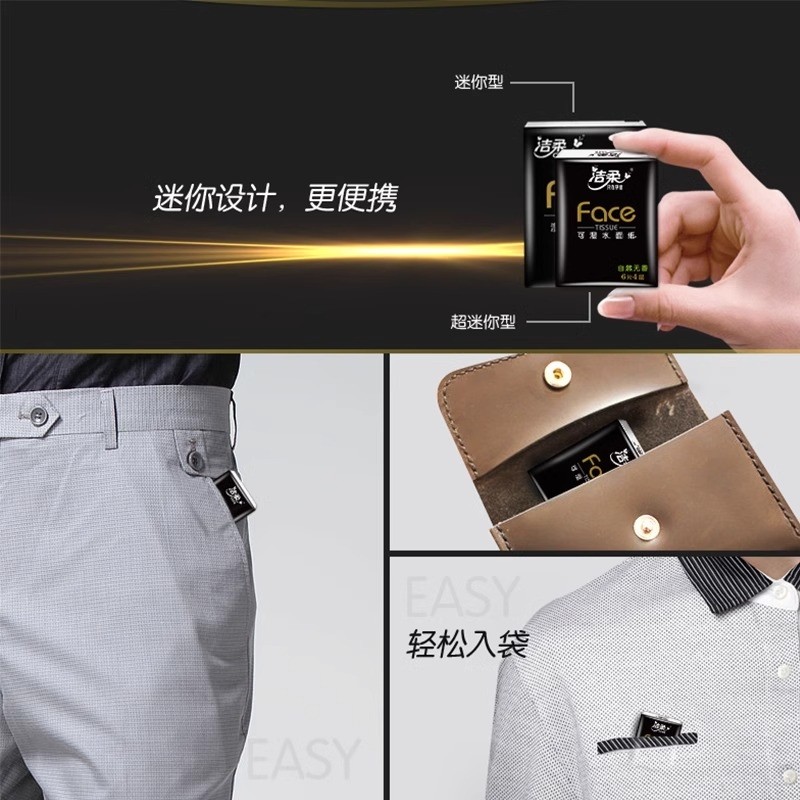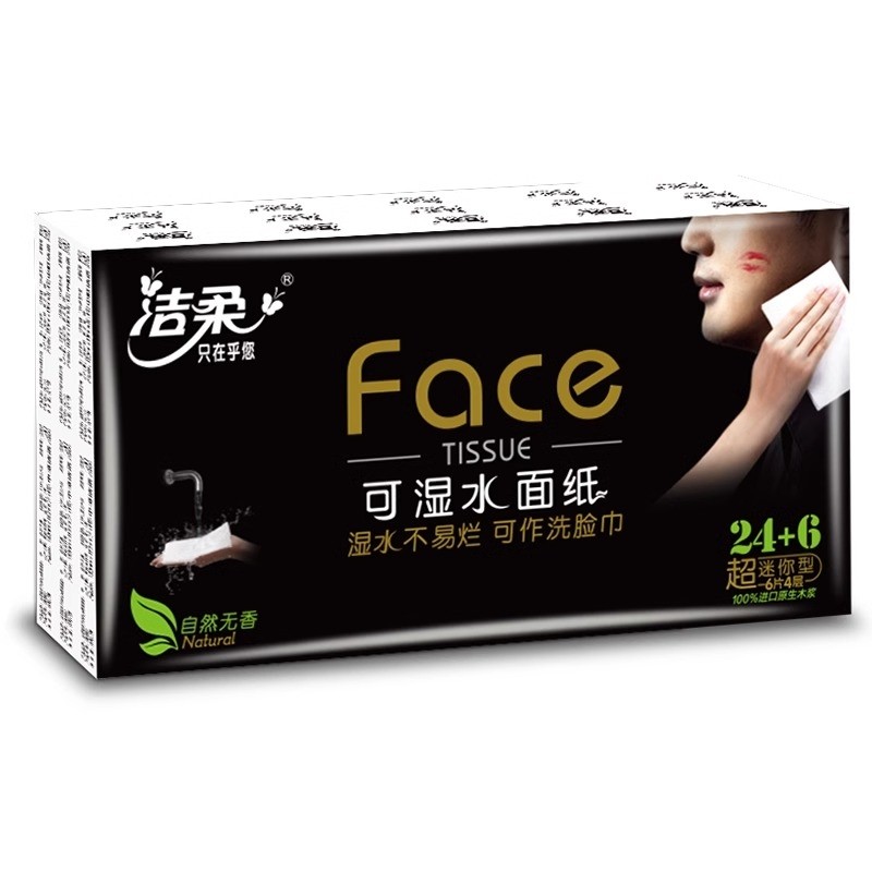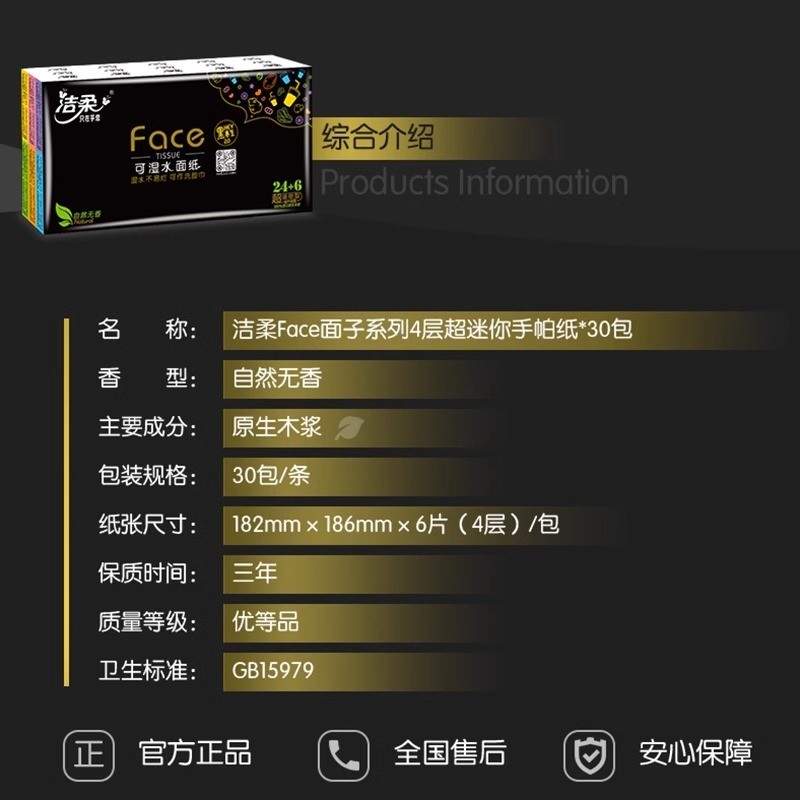 洁柔手帕纸4层30包无香可湿水便携式随身装餐巾纸卫生纸面巾纸