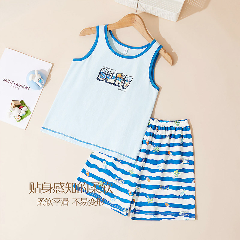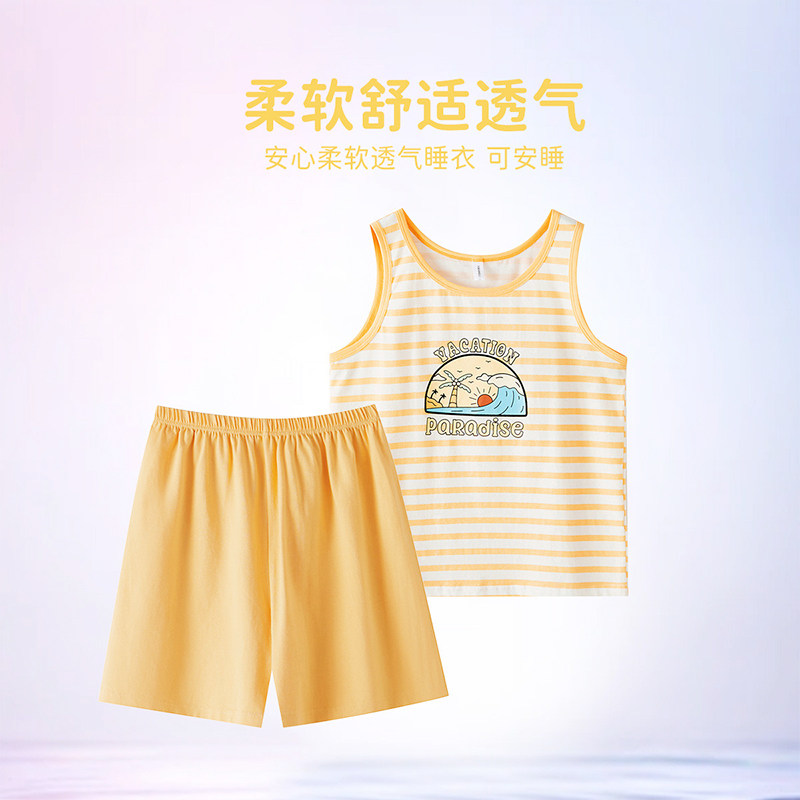 GOSO童装家居服男女童夏季新款纯棉短袖背心睡衣