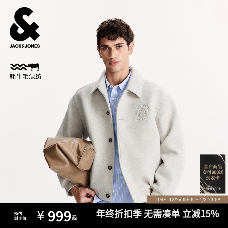 杰克琼斯男装士2025年秋冬新款男生翻领毛呢大衣经典百搭舒适夹克