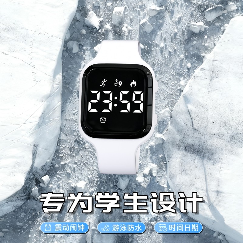 电子手表男初高中学生女无声震动闹钟静音儿童运动只看时间考试环