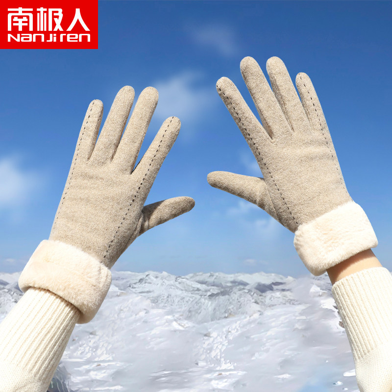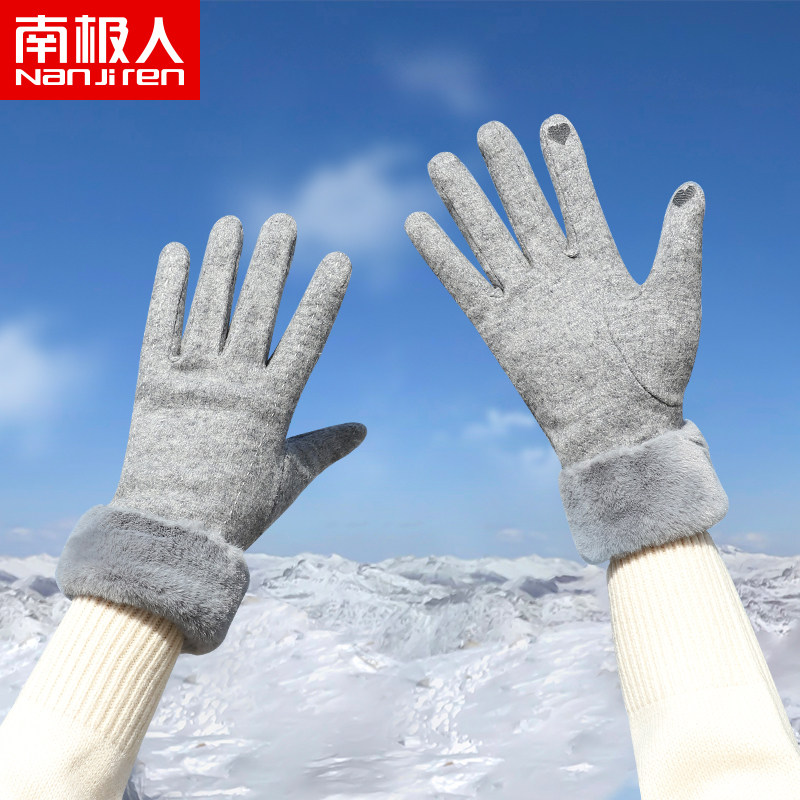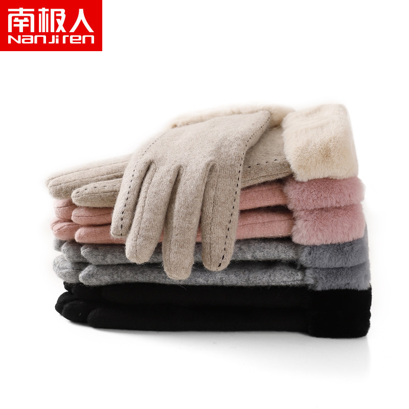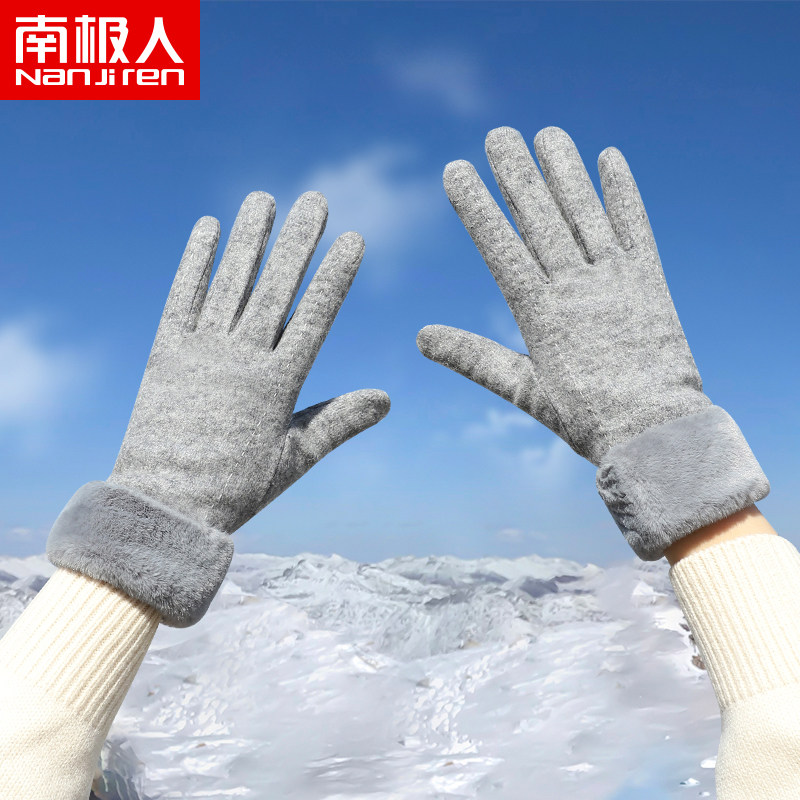 南极人手套女冬季加绒保暖防寒手套开车骑行加厚羊毛触屏女新款H