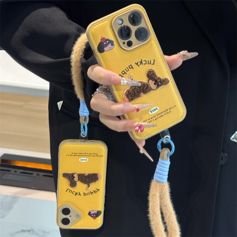 lucky趴趴小狗适用苹果17promax手机壳16pro华为mate70新款小熊贴件pura70挂绳糖果气垫壳OPPOReno13/vivos20