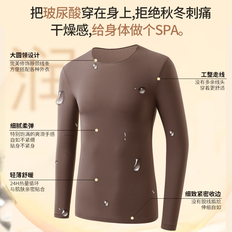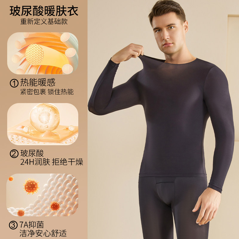 超薄肌底衣秋衣秋裤男士玻尿酸美肤隐形面膜37度恒温保暖内衣套装